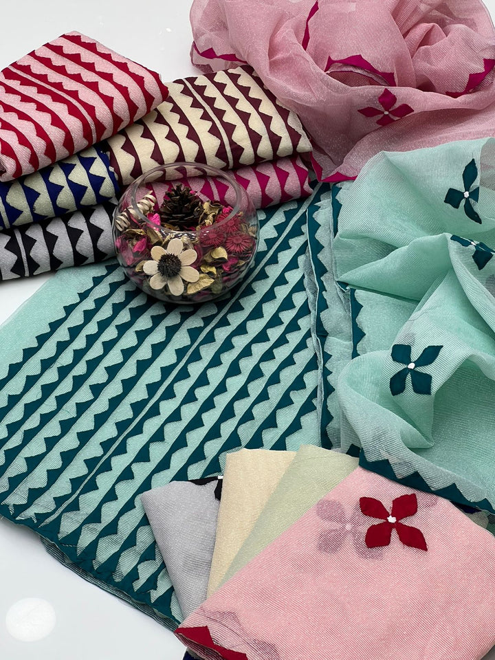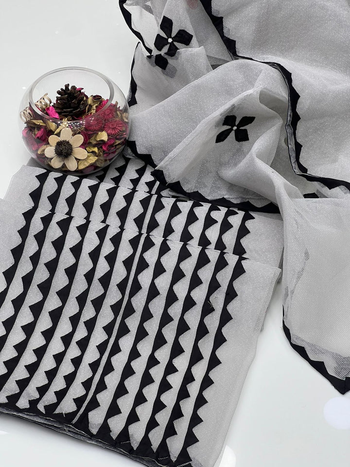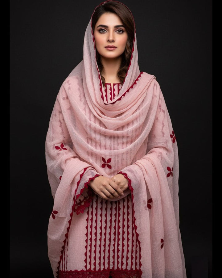 Khaddi Net Handmade Applick Front Panel Style Shirt With Khaddi Net Handmade Applick Work Dupatta 2Pcs Dress π.Β