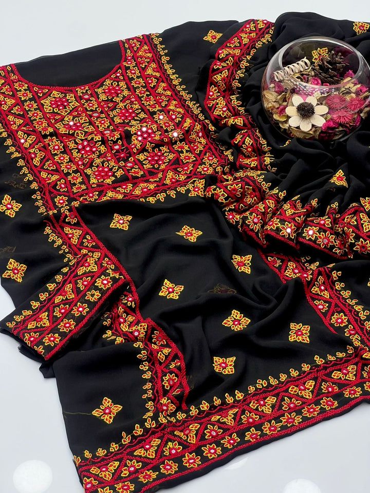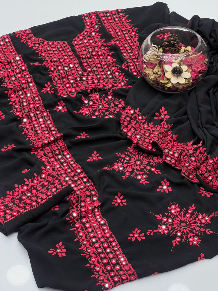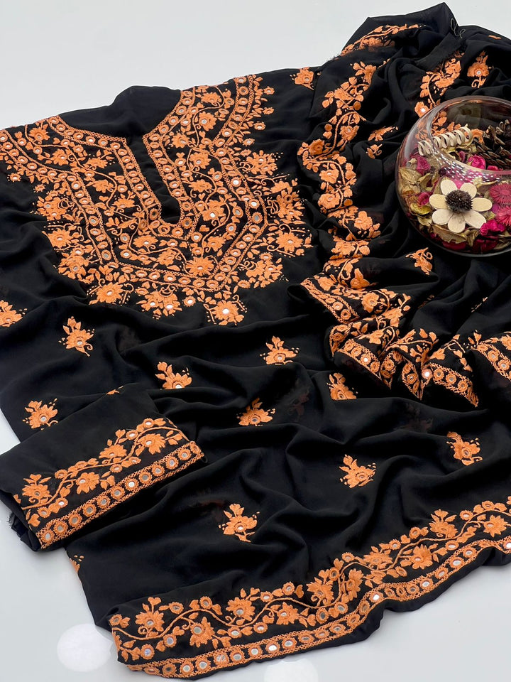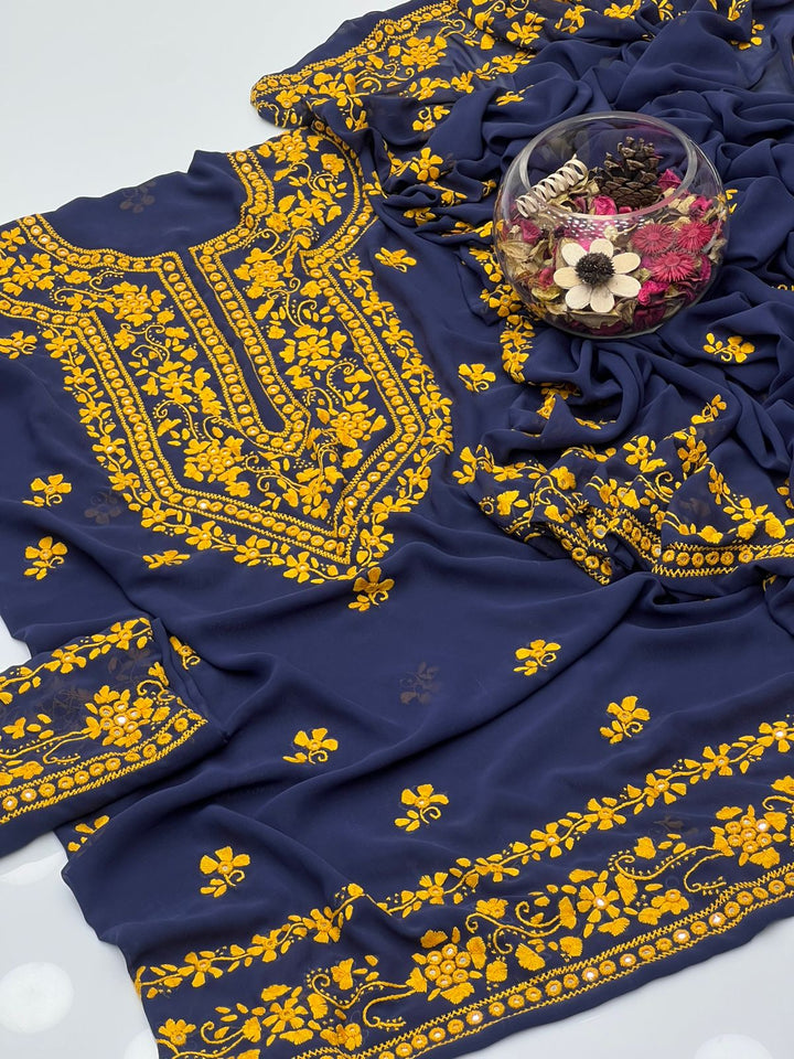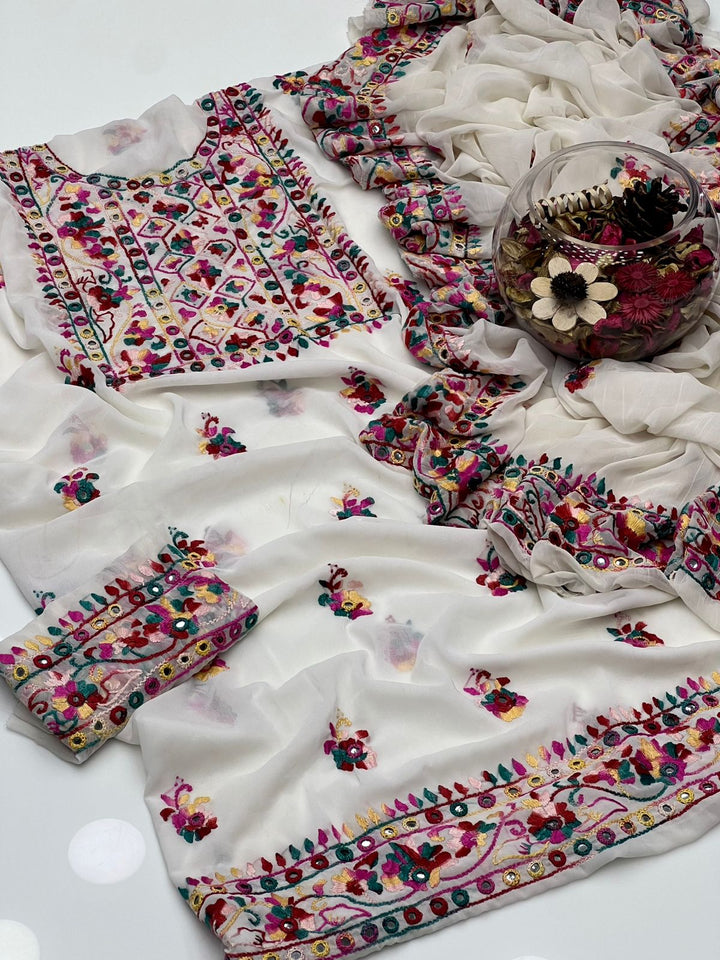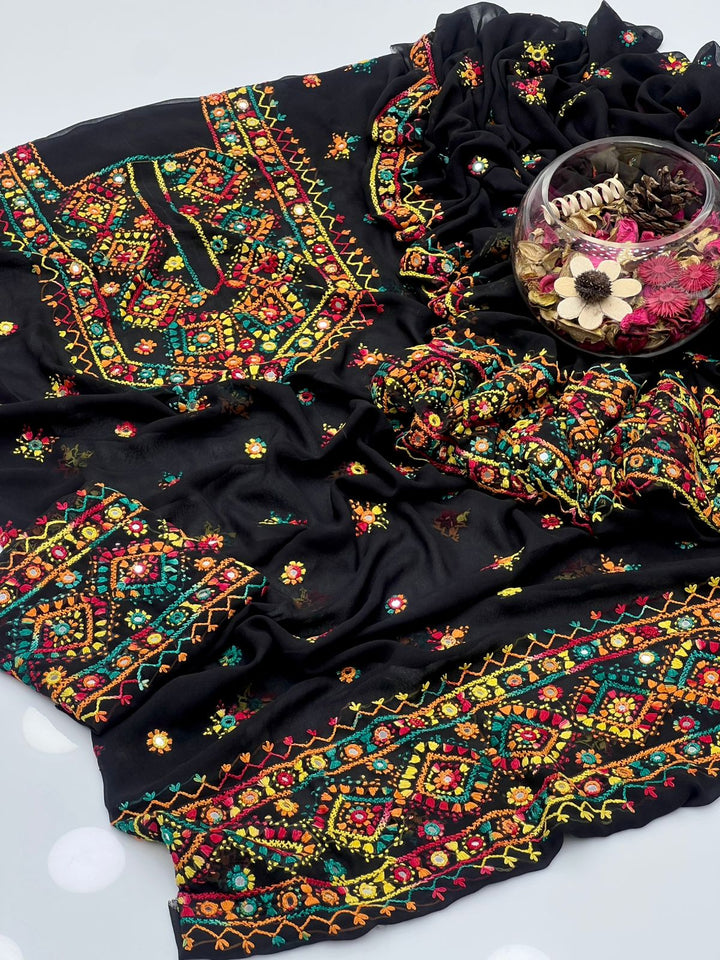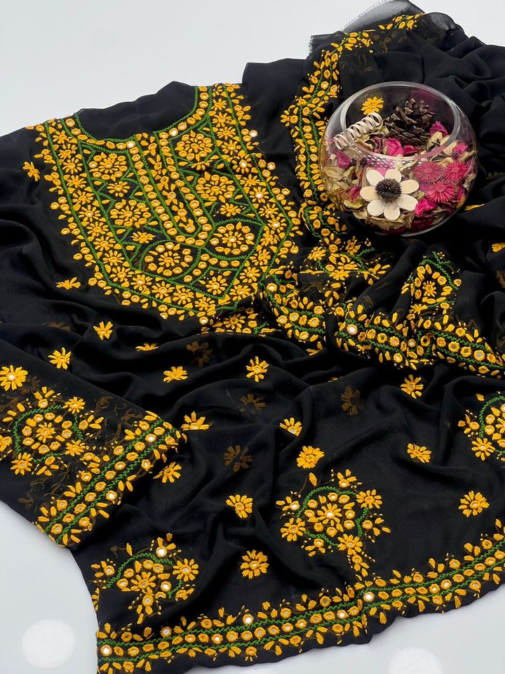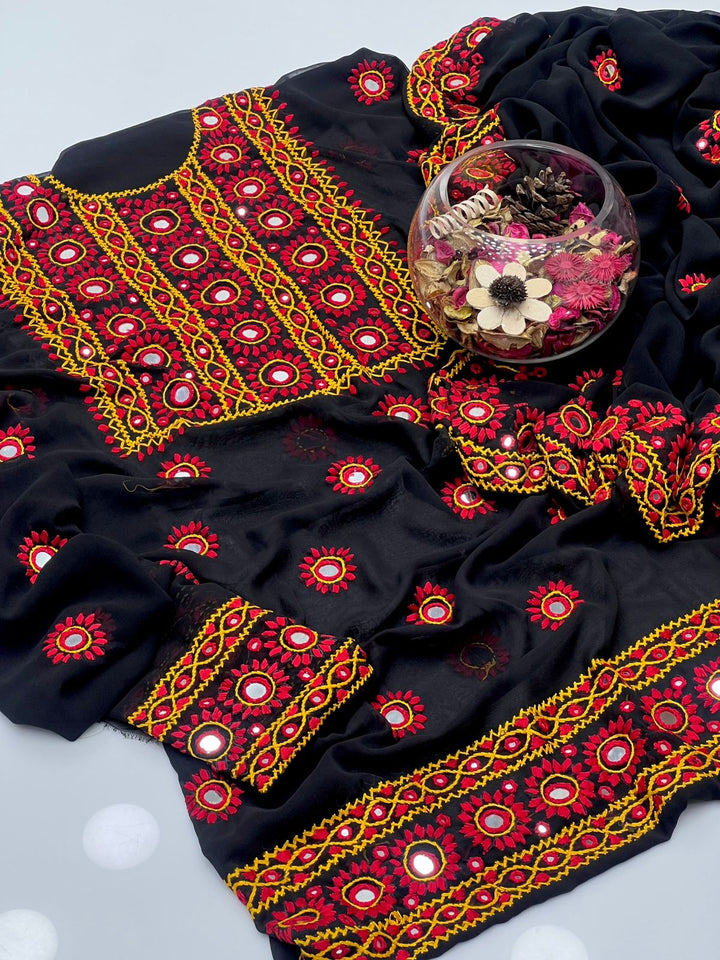Korean Georgette HandMade Embroidered Pola Paka Tanka With Original Mirror Work Shirt , Sleeves & Dupatta 2 Pcs Dress π