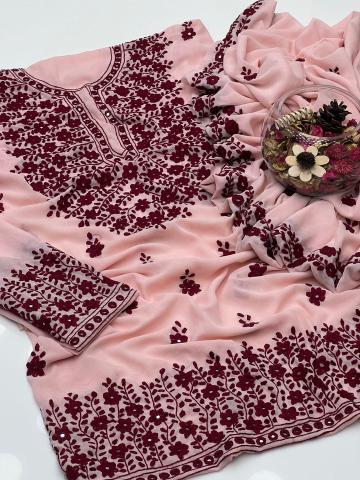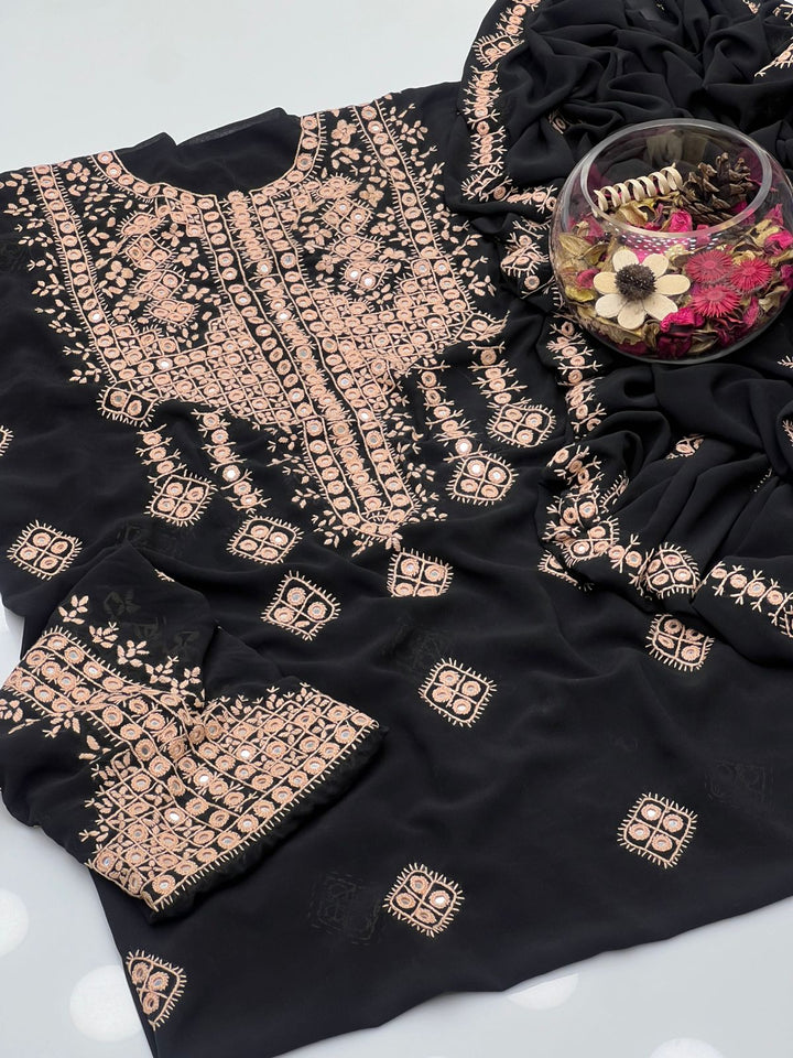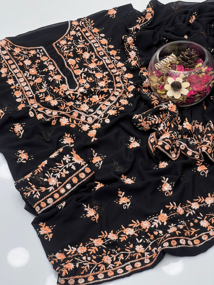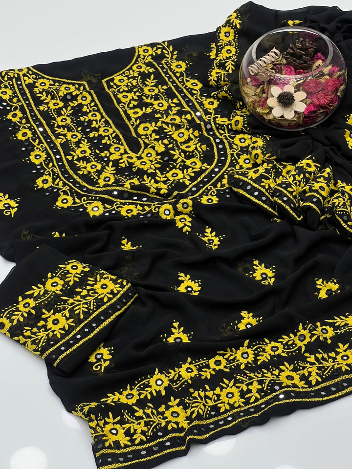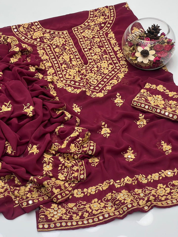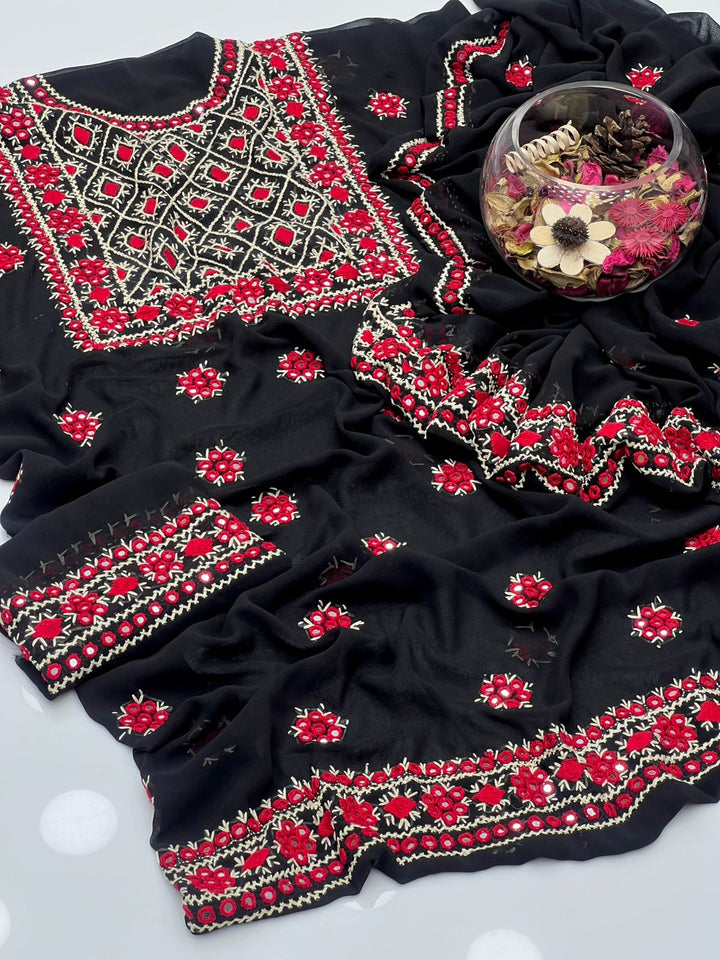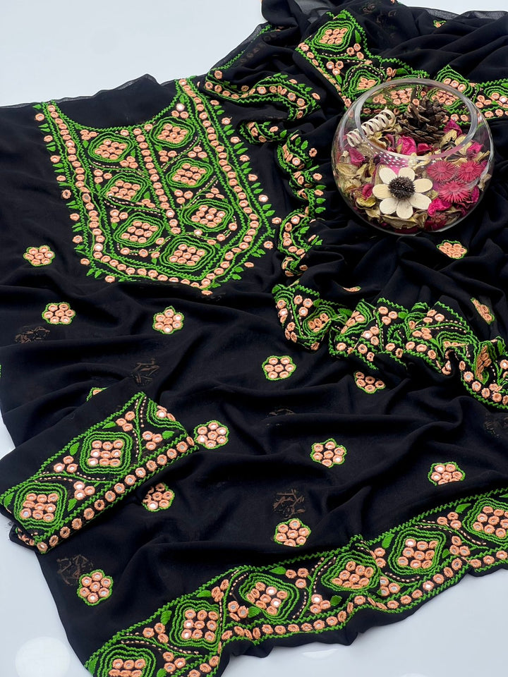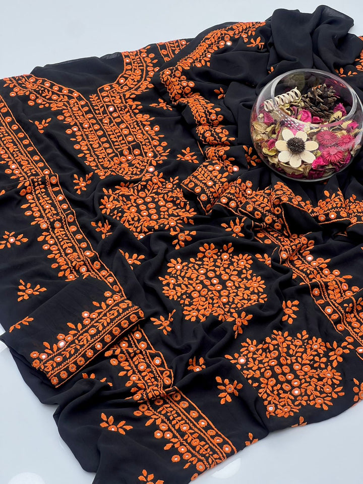 Korean Georgette HandMade Embroidered Pola Paka Tanka With Original Mirror Work Shirt , Sleeves & Dupatta 2 Pcs Dress π