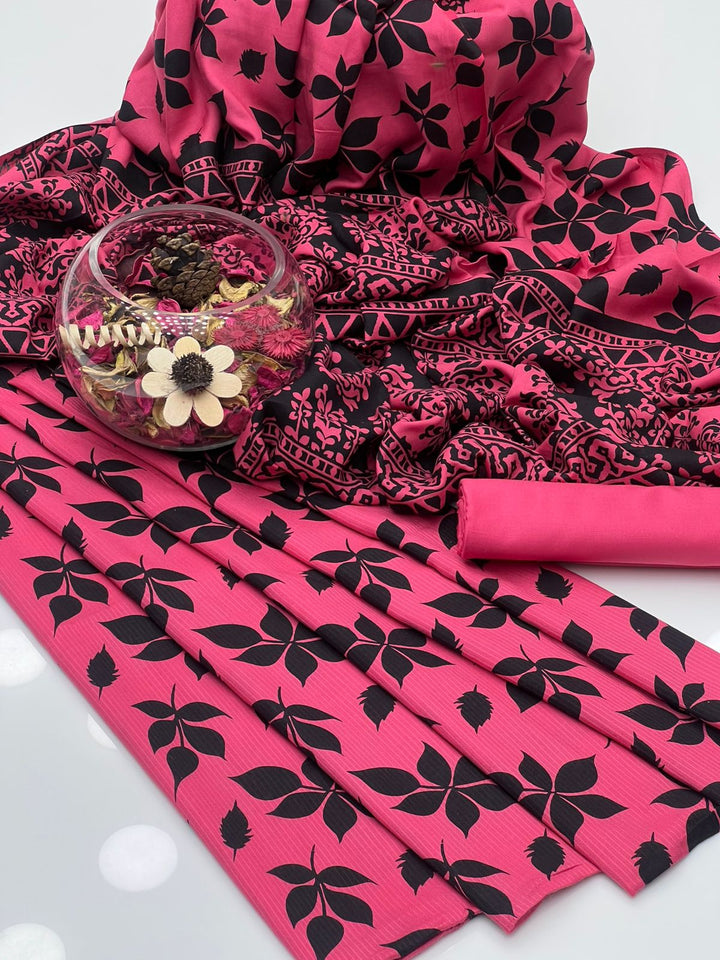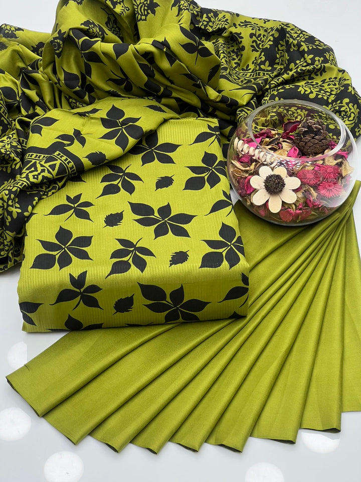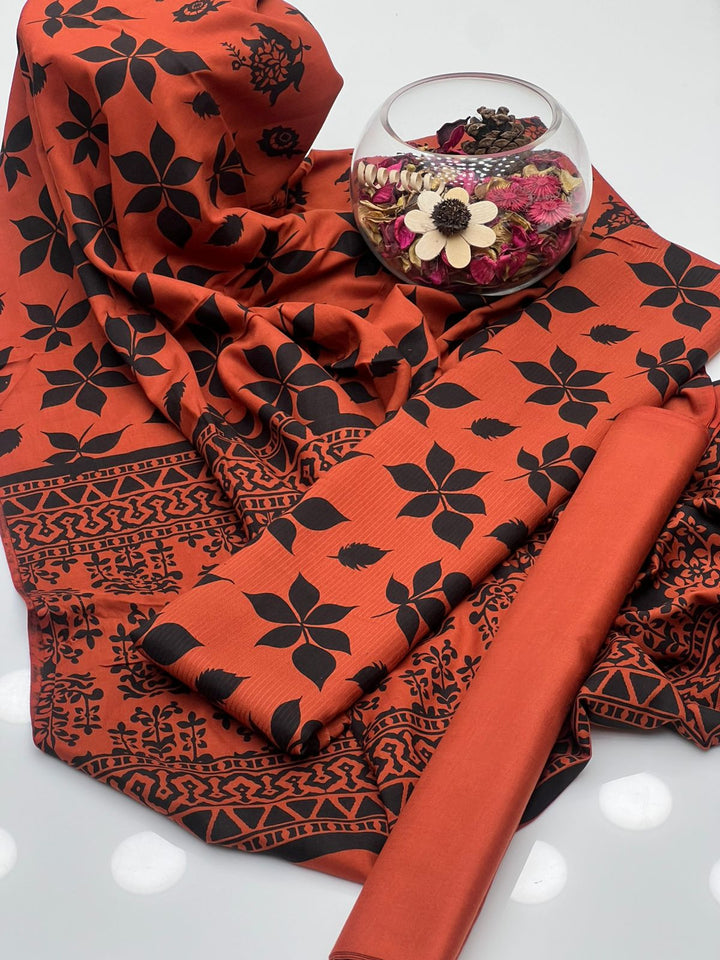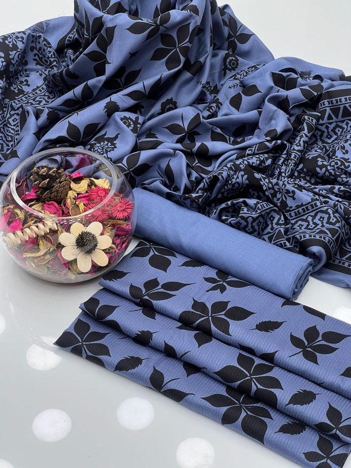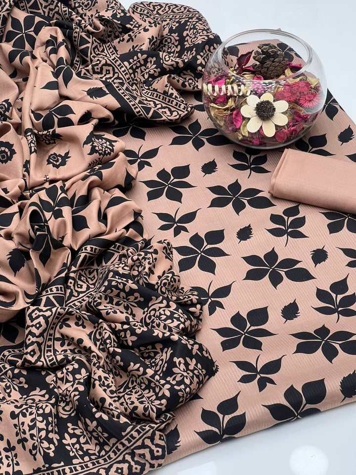 Linen Floral Table Print Shirt & Dupatta Along With Simple Linen Trouser 3Pcs Dress πŸ‘—.Β