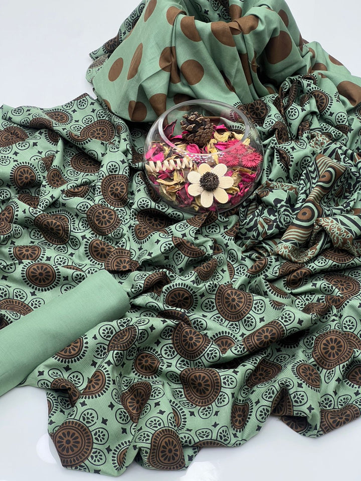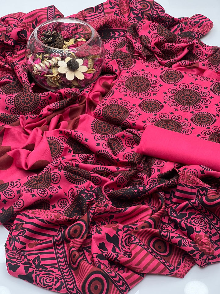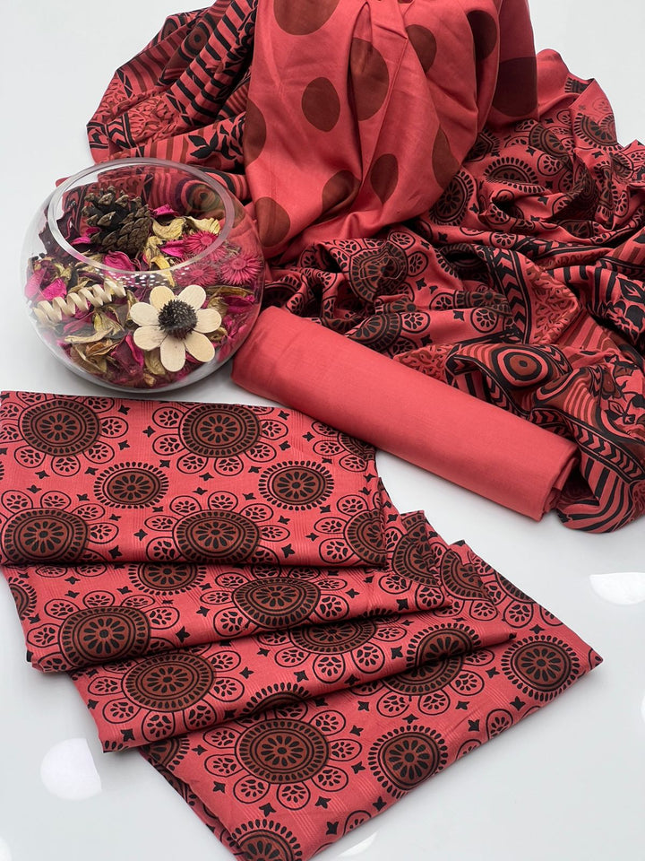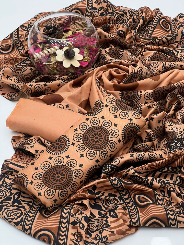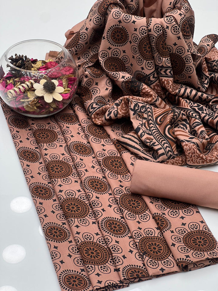 Linen Floral Table Print Shirt & Dupatta Along With Simple Linen Trouser 3Pcs Dress πŸ‘—.Β
