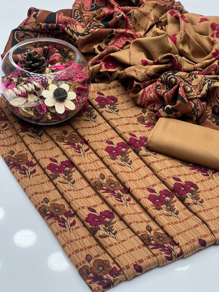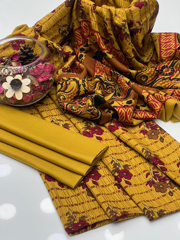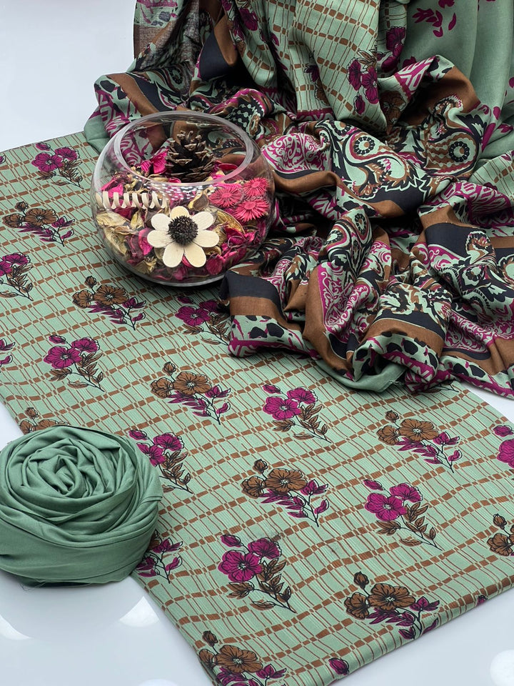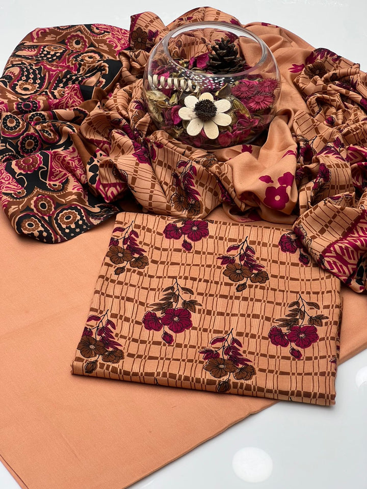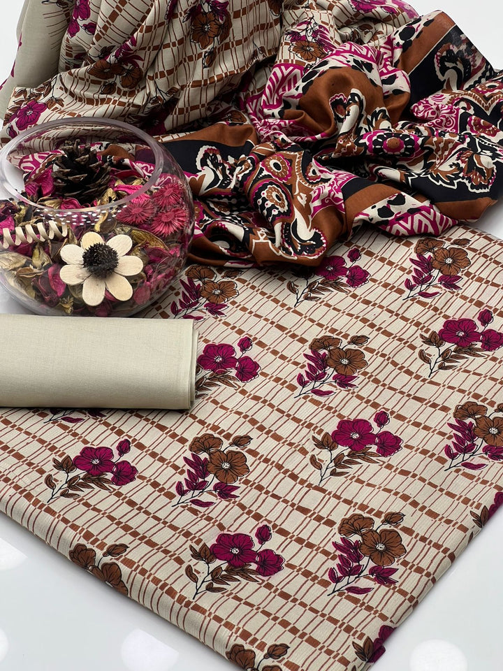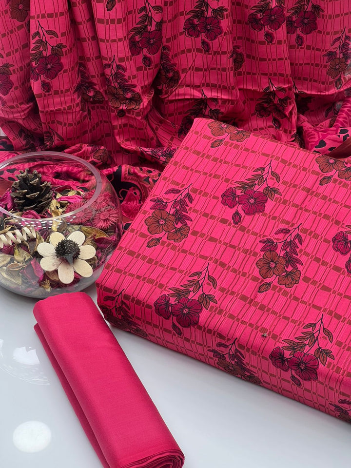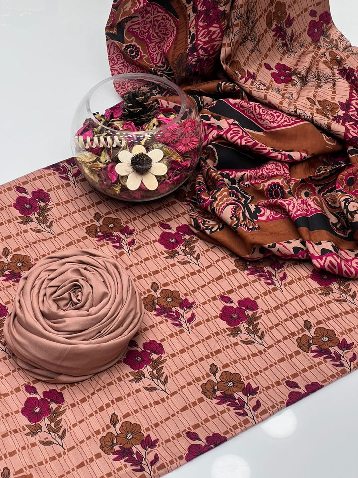 Linen Floral Table Print Shirt & Dupatta Along With Simple Linen Trouser 3Pcs Dress πŸ‘—.Β
