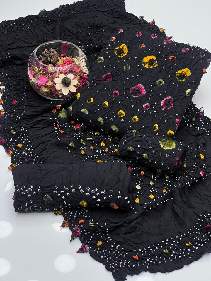 Linen Rajhistani Handmade Chunnri All Over Chunnat Shirt, Sleeves , Trouser & Dupatta 4 Pcs Dress π .