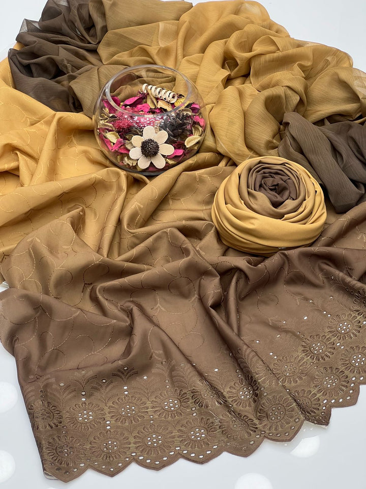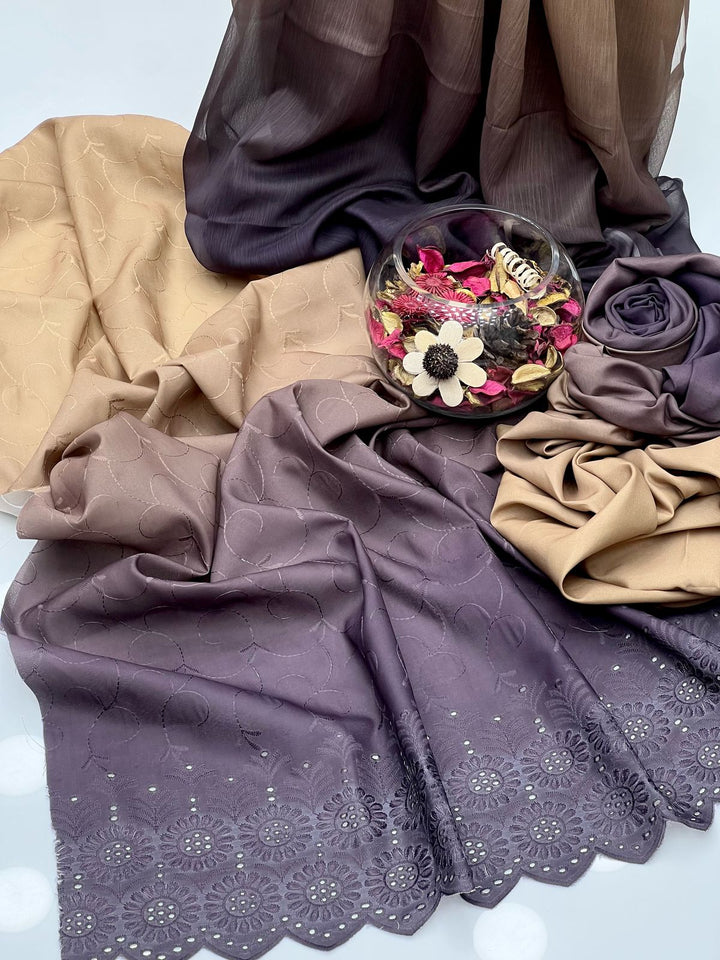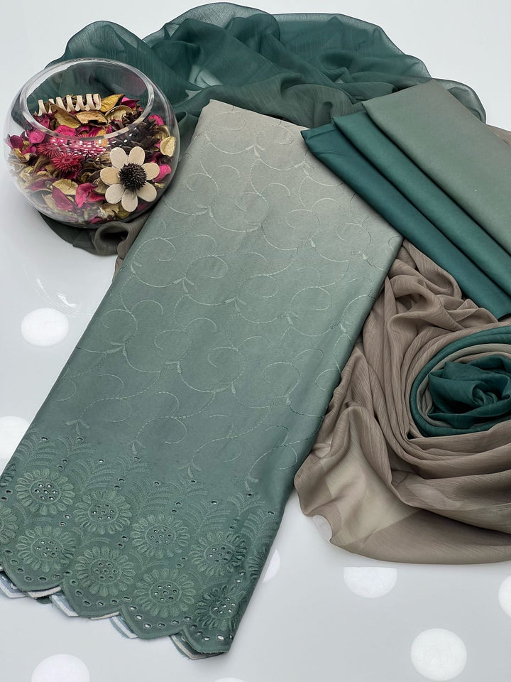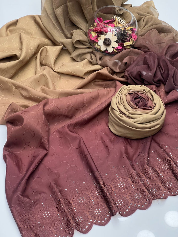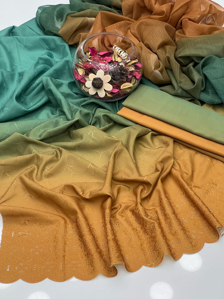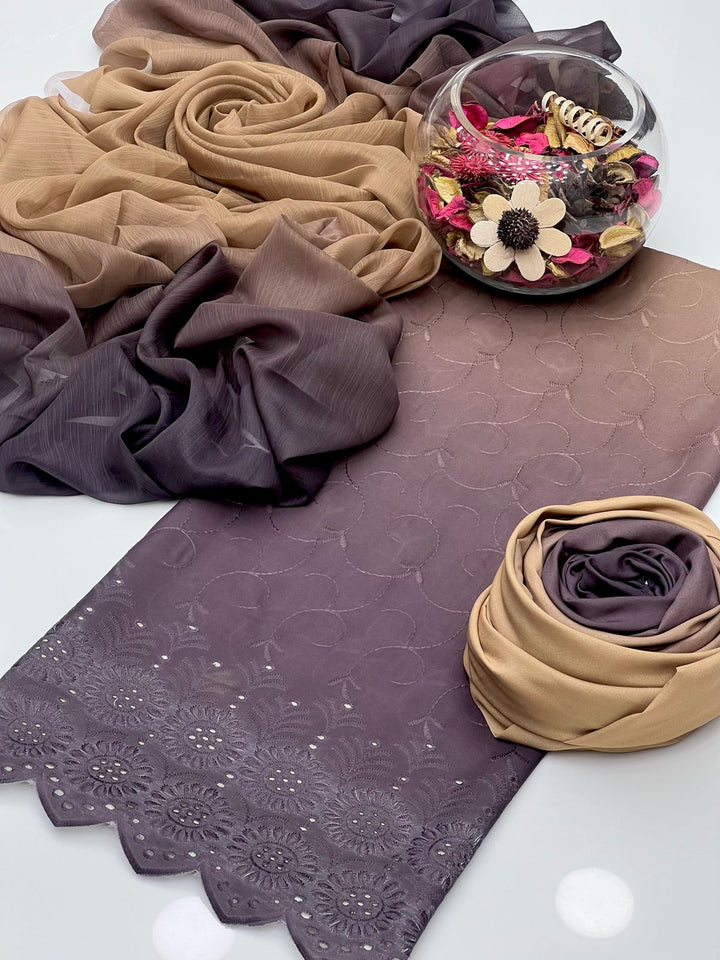 Monar Swiss Lawn Jall Embroidery Chiken Border 'Tye 'N' Dye' Shirt With Monar Swiss Lawn 'Tye 'N' Dye' Trouser Along With 'Tye 'N' Dye' Chiffon Dupatta 3 Pcs Dress π.