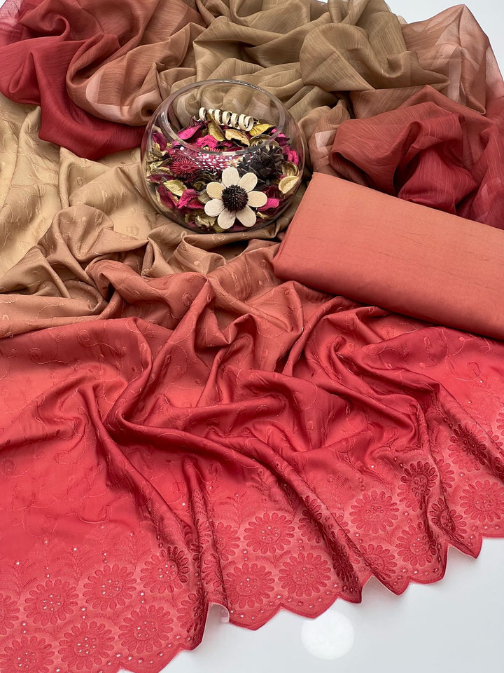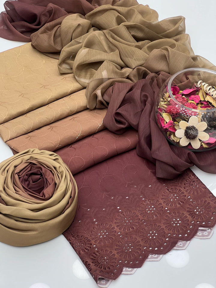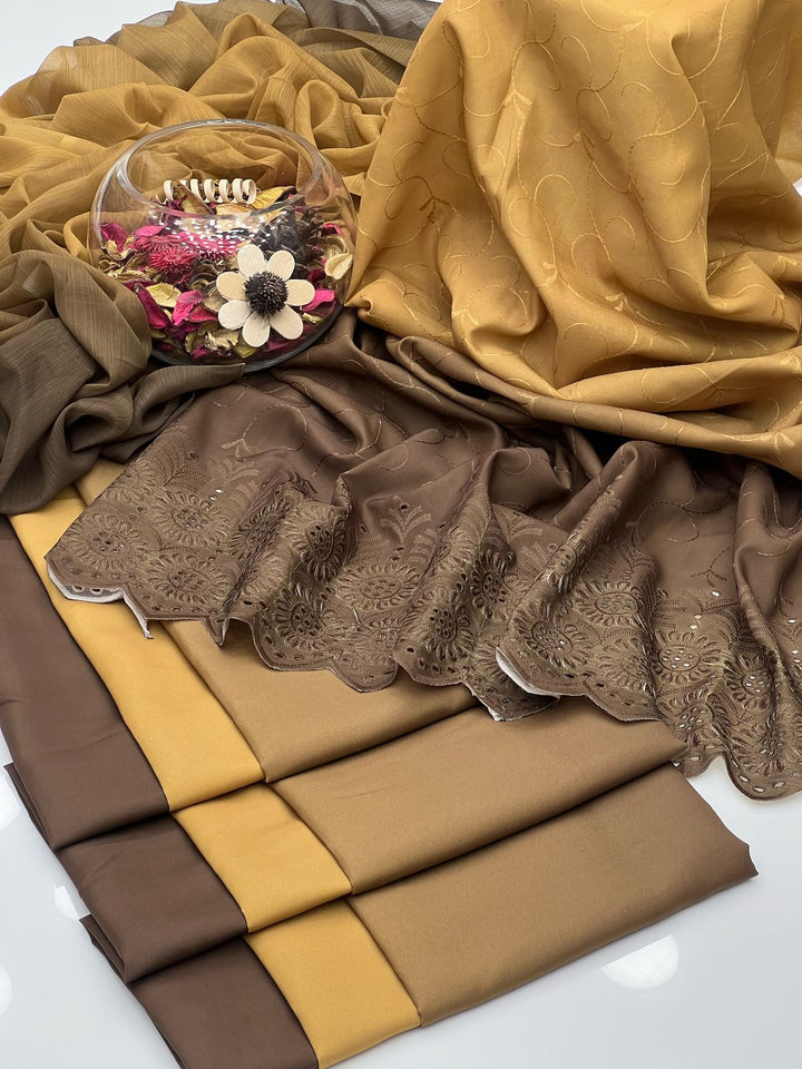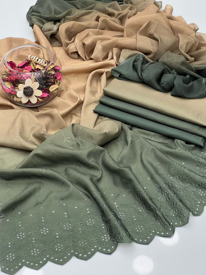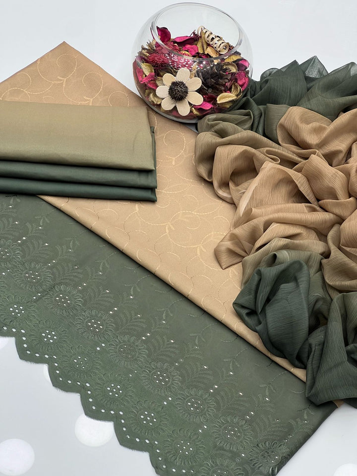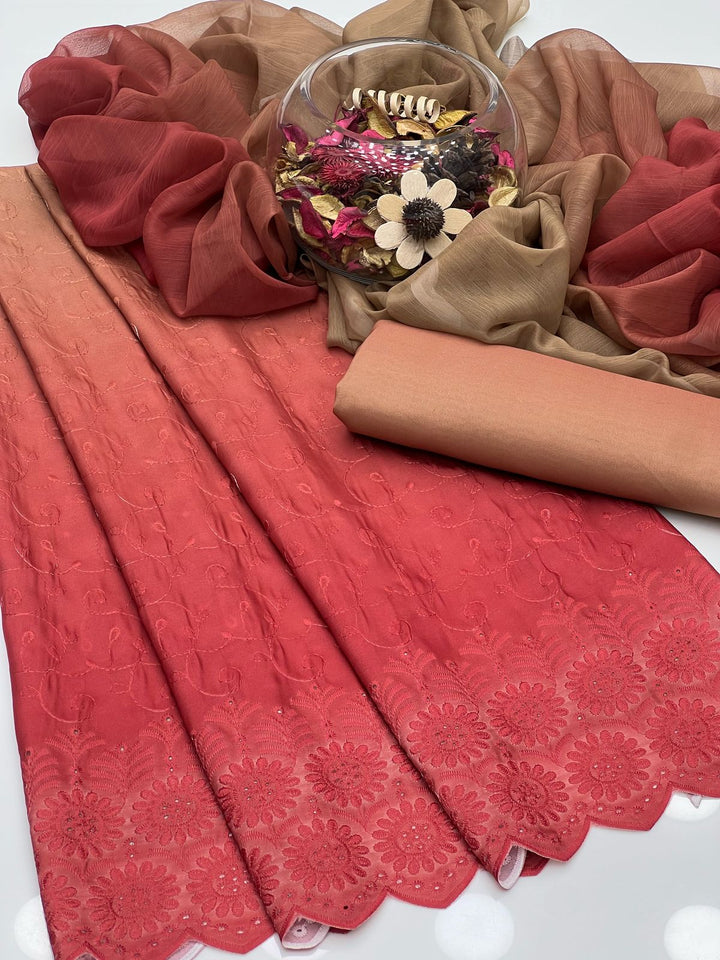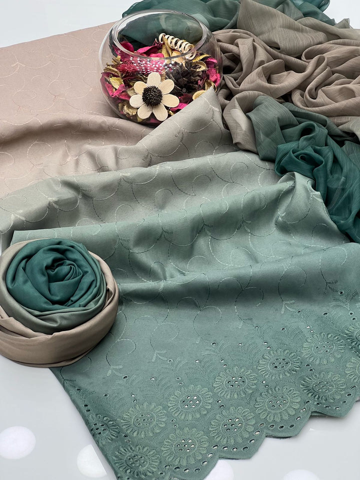 Monar Swiss Lawn Jall Embroidery Chiken Border 'Tye 'N' Dye' Shirt With Monar Swiss Lawn 'Tye 'N' Dye' Trouser Along With 'Tye 'N' Dye' Chiffon Dupatta 3 Pcs Dress π.