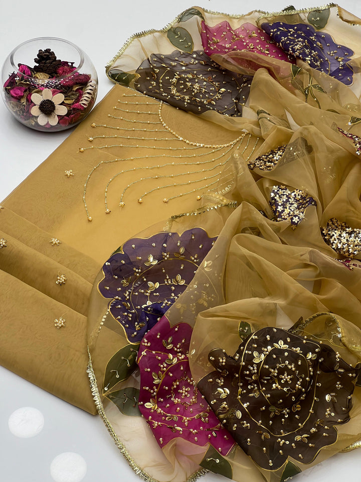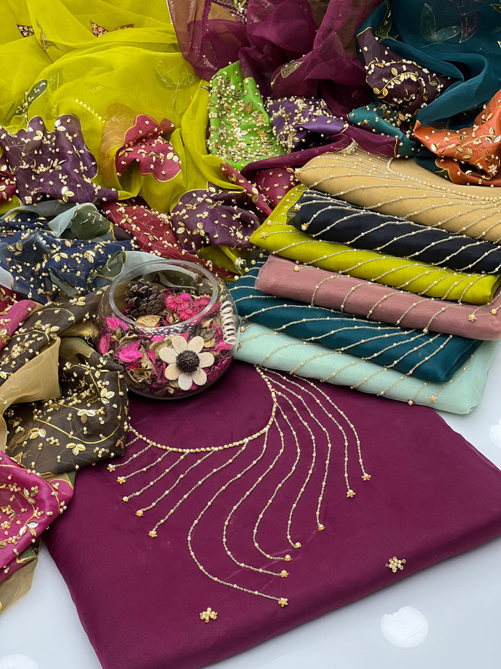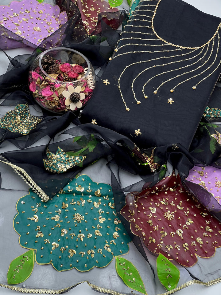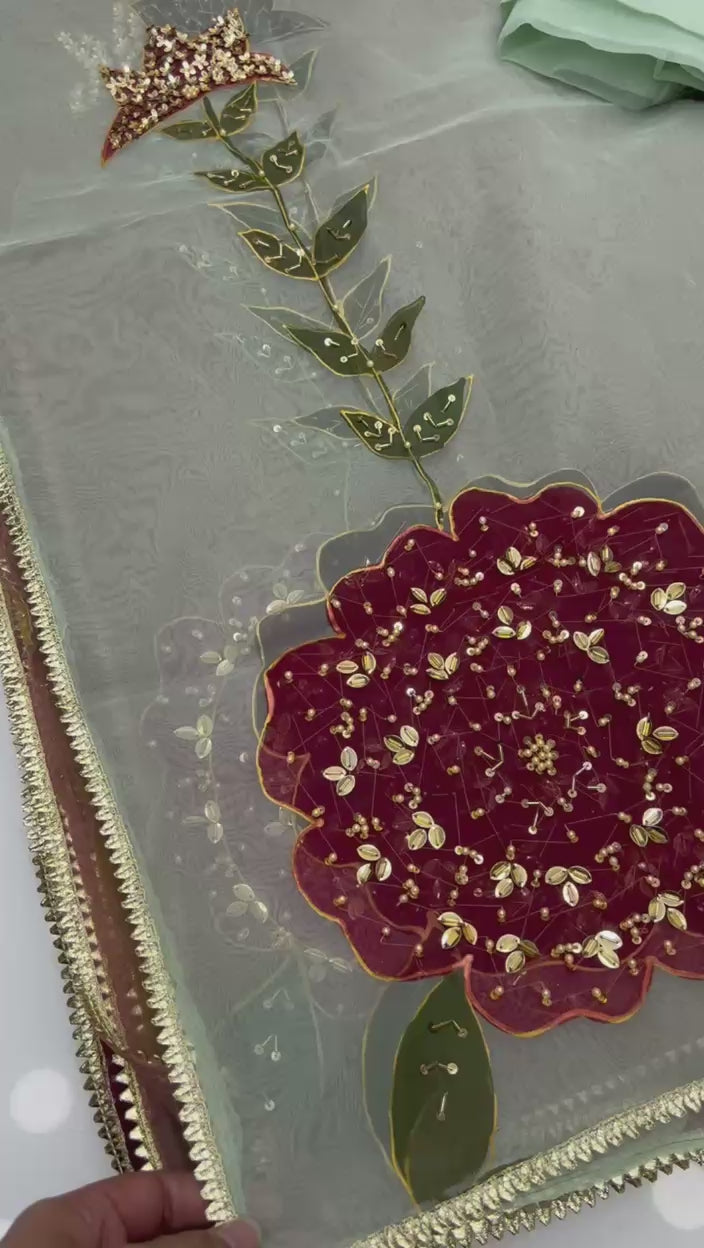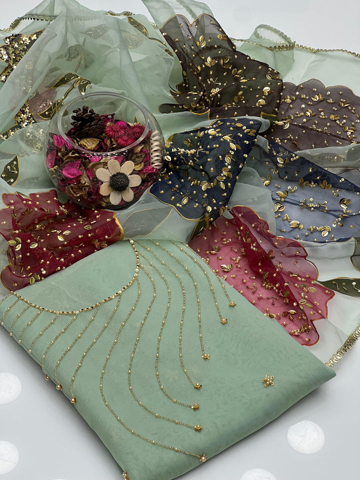 Organza Shirt With Lehria Gala Handwork Zaari Beads Work Oil Paint Organza 2 Sided Heavy Bunch Duppata 2 Pc Dress 👗.
