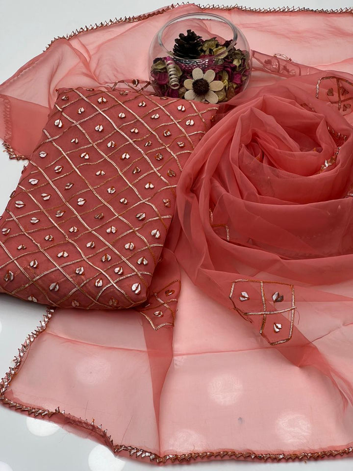 Organza Gotta Jal Work Shirt With Gotta Motives & 4 Sided Gotta Work Dupatta 2 Pcs Dress π