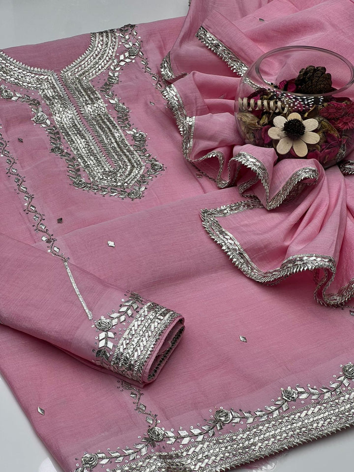 Paper Cotton Handmade LCD Gulaab Gotta Work Shirt With Gotta Work Sleeves Along With 4 Sided Gotta Work Dupatta 2 Pcs Dress π.