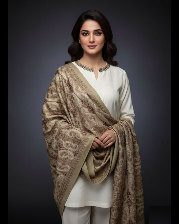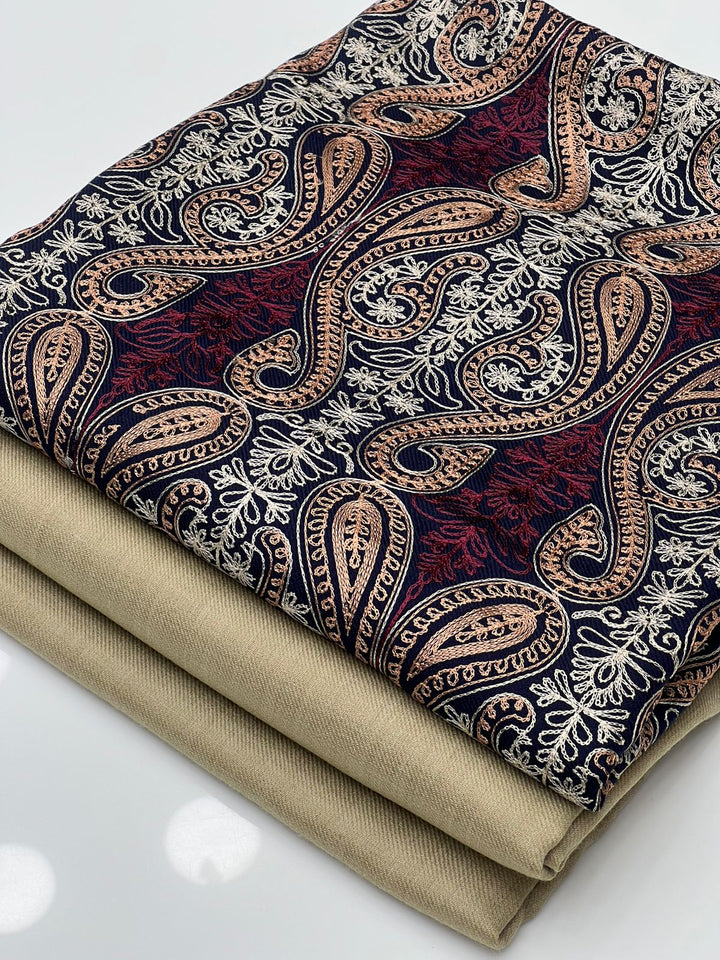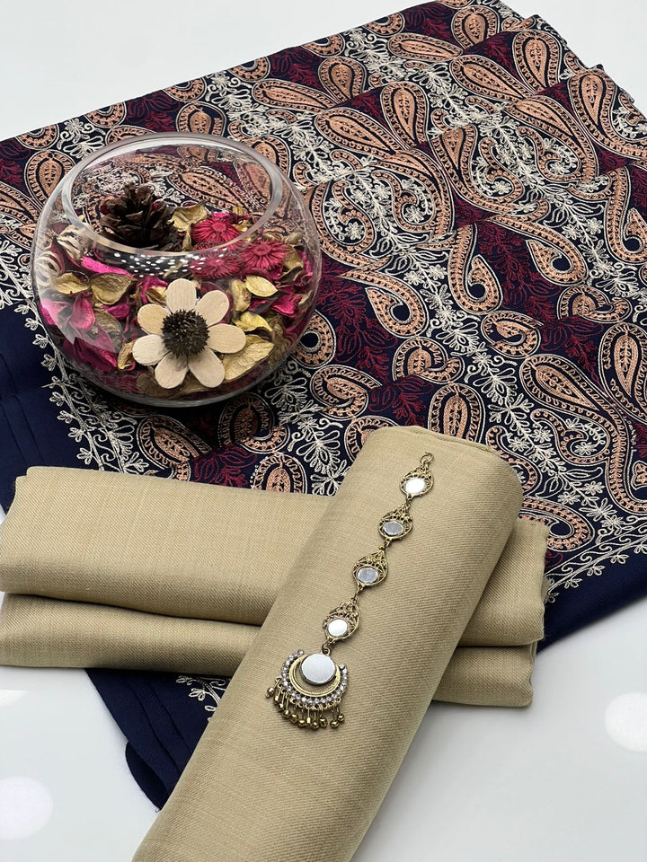 Pashmina Wool Plain Shirt & Trouser Along With Pashmina Wool Full Heavy Jall ریشم آری Embroidery Shawl Size 2.5x1.15 Yard 3Pcs Dress 👗.