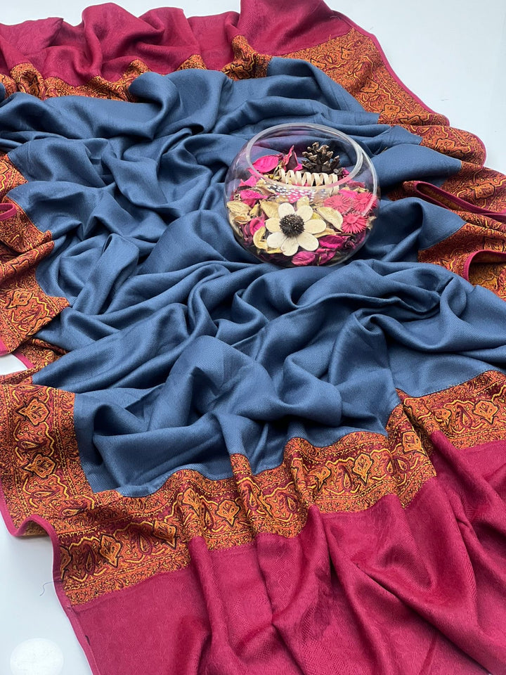 Pashmina Wool With Jamawar Moonlight Border Shawl.