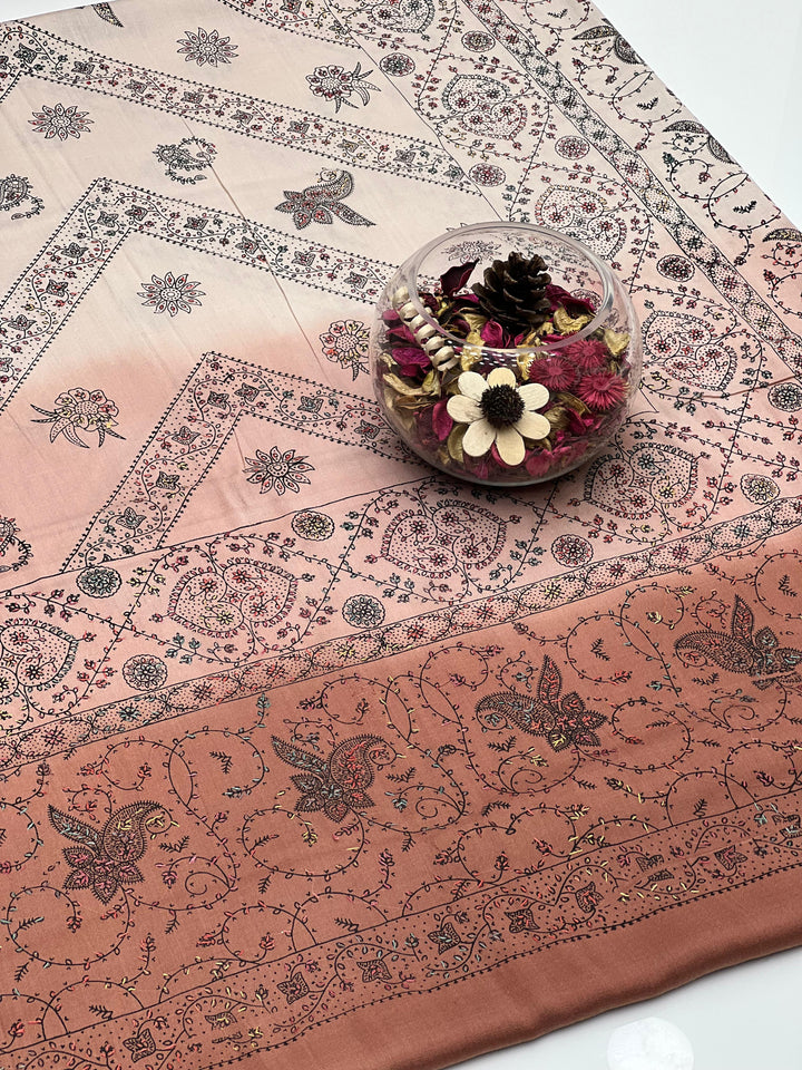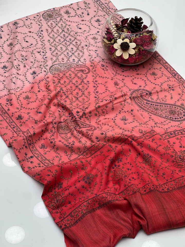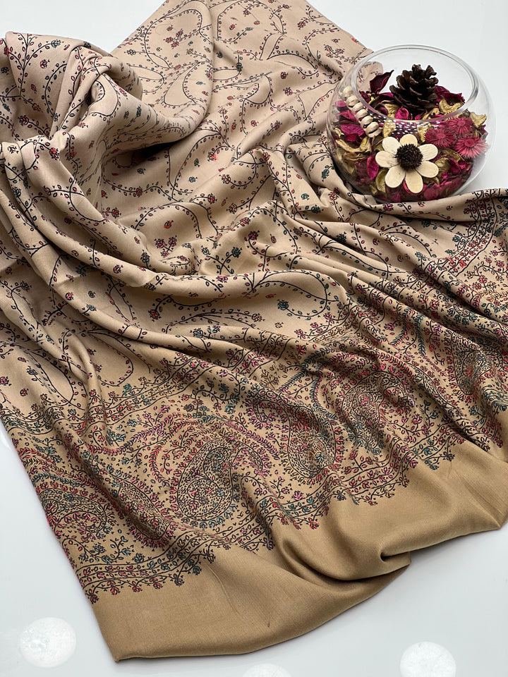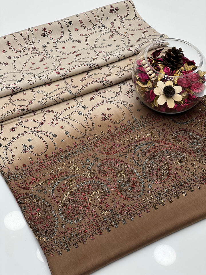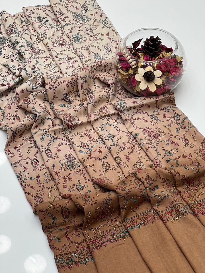 Pure Pashmina 2 Tone Kashmeri Tankaa With Hand Paint Full Jaal Shawl.