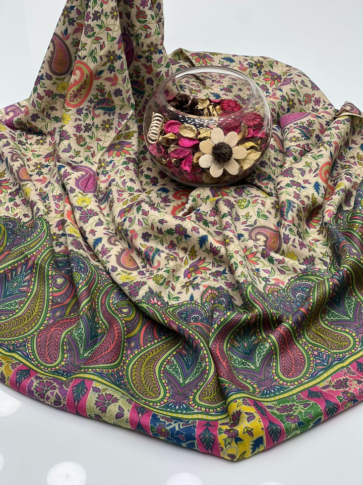 Pure Pashmina Wool Anarkali Style Jaal With Border Style Digital Print Shawl.