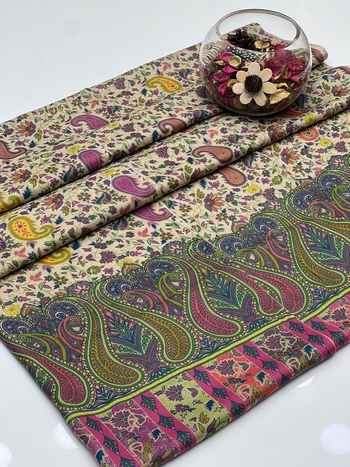Pure Pashmina Wool Anarkali Style Jaal With Border Style Digital Print Shawl KS10225525P