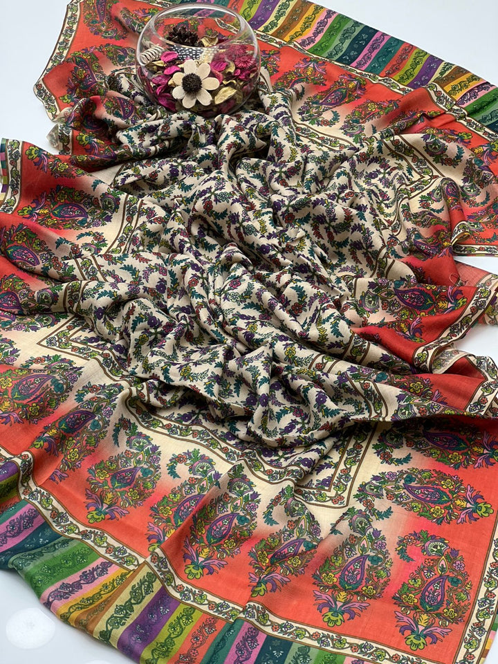 Pure Pashmina Wool Anarkali Style Jaal With Border Style Digital Print Shawl.
