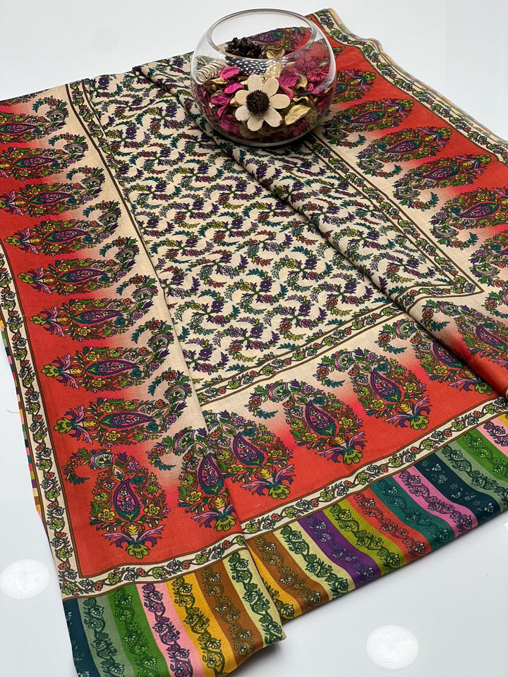 Pure Pashmina Wool Anarkali Style Jaal With Border Style Digital Print Shawl KS1025525C