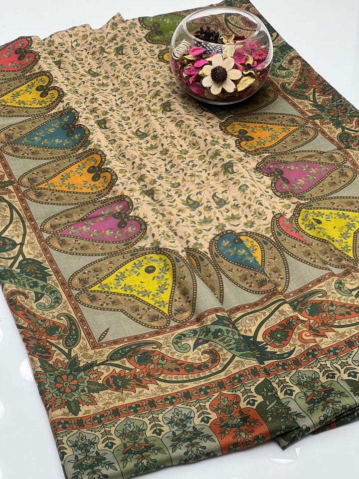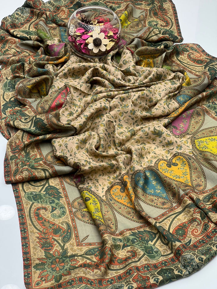 Pure Pashmina Wool Anarkali Style Jaal With Border Style Digital Print Shawl KS1025525D