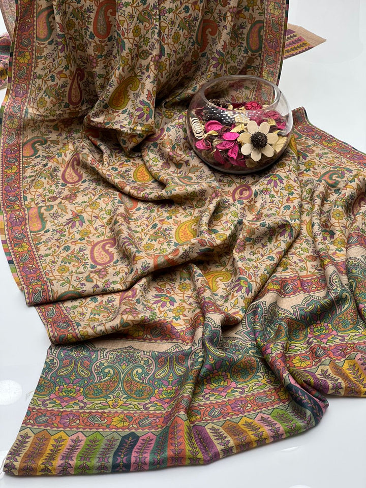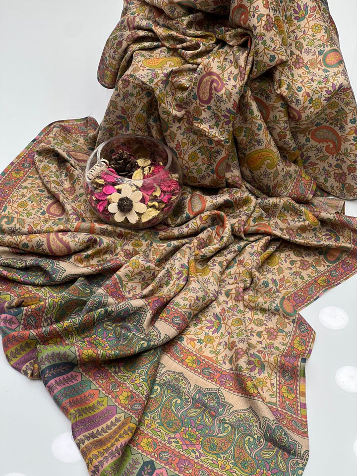 Pure Pashmina Wool Anarkali Style Jaal With Border Style Digital Print Shawl.