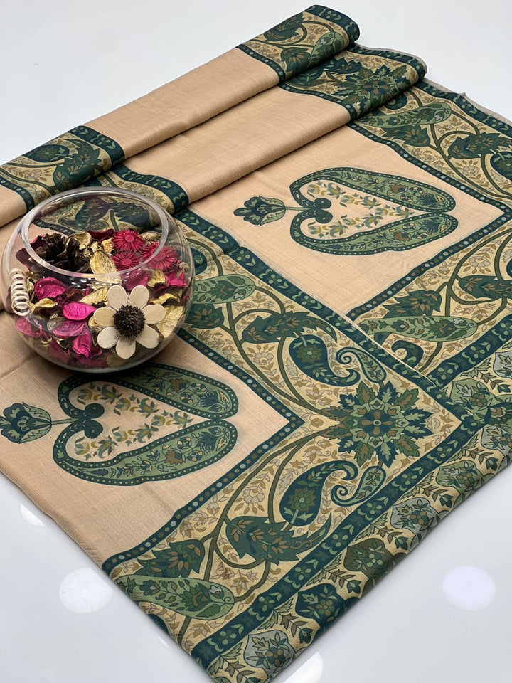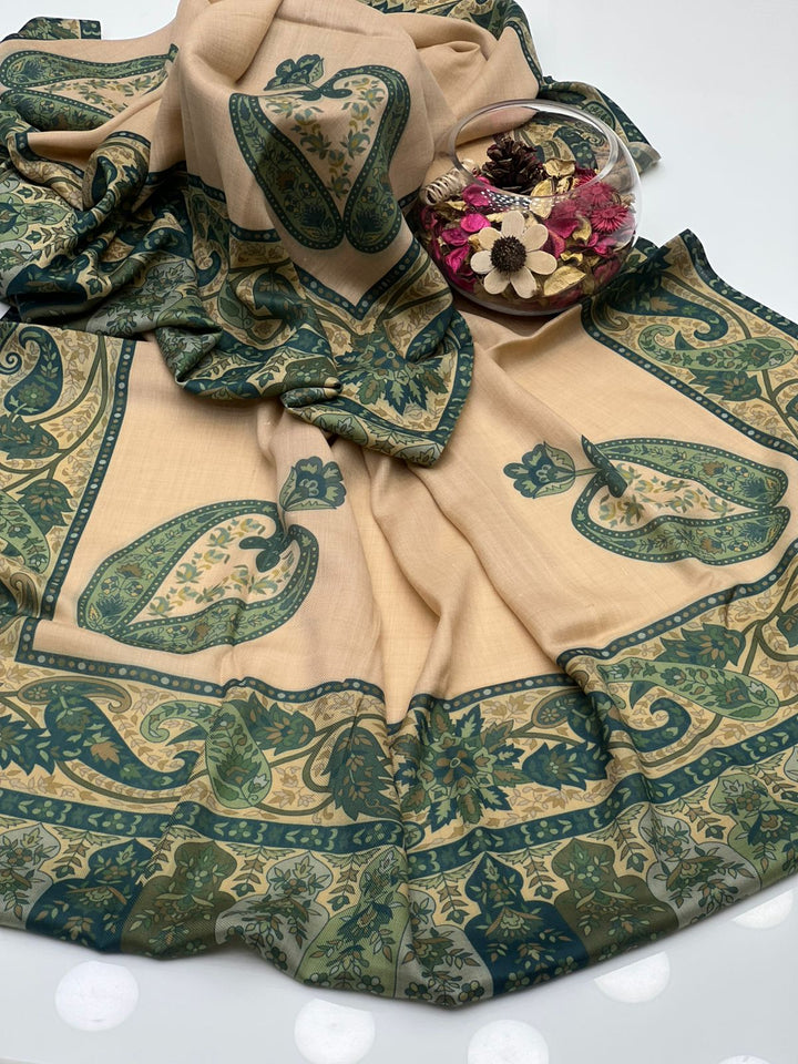 Pure Pashmina Wool Anarkali Style Jaal With Border Style Digital Print Shawl KS1025525I