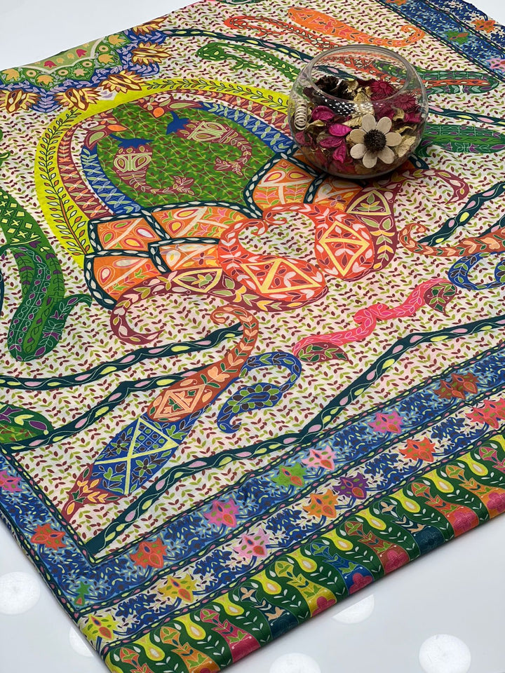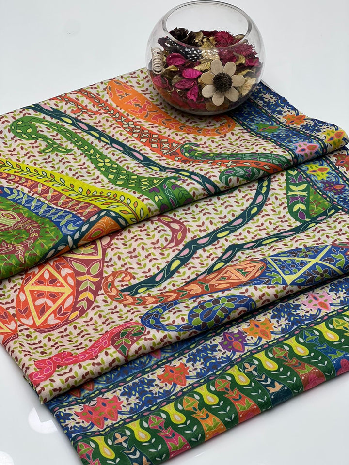 Pure Pashmina Wool Anarkali Style Jaal With Border Style Digital Print Shawl KS1025525K
