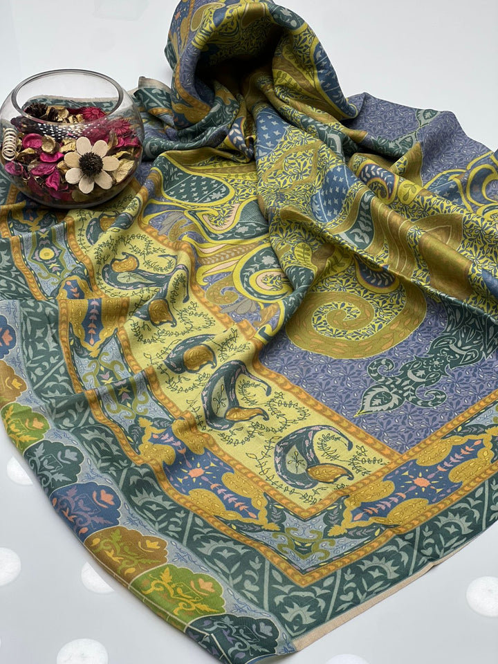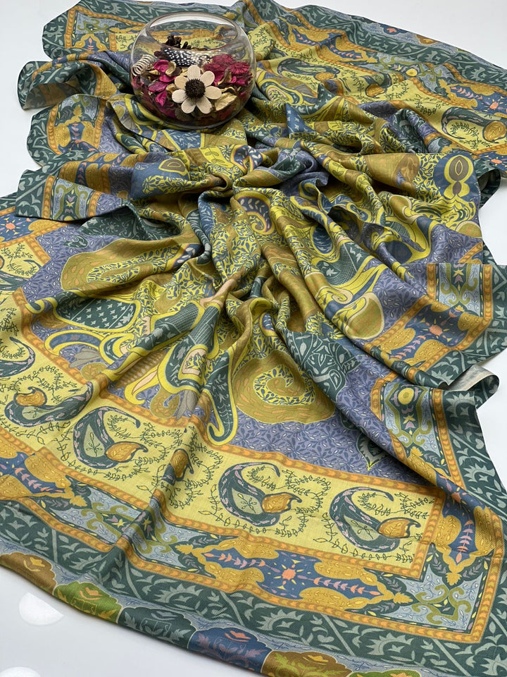 Pure Pashmina Wool Anarkali Style Jaal With Border Style Digital Print Shawl KS1025525M