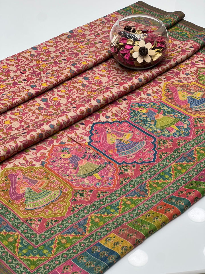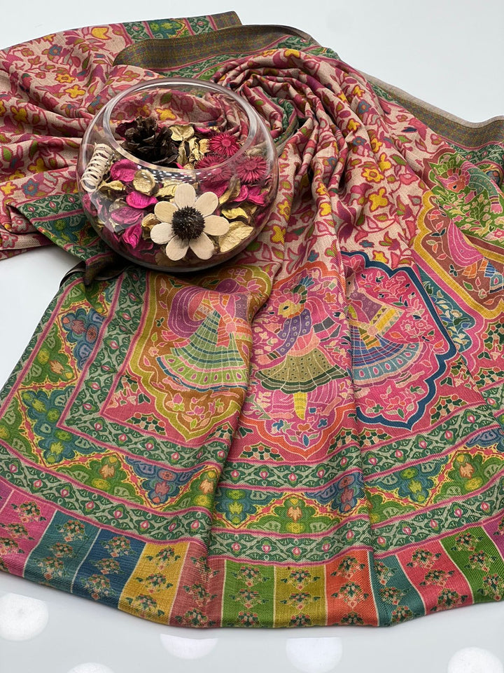 Pure Pashmina Wool Anarkali Style Jaal With Border Style Digital Print Shawl.