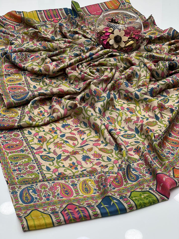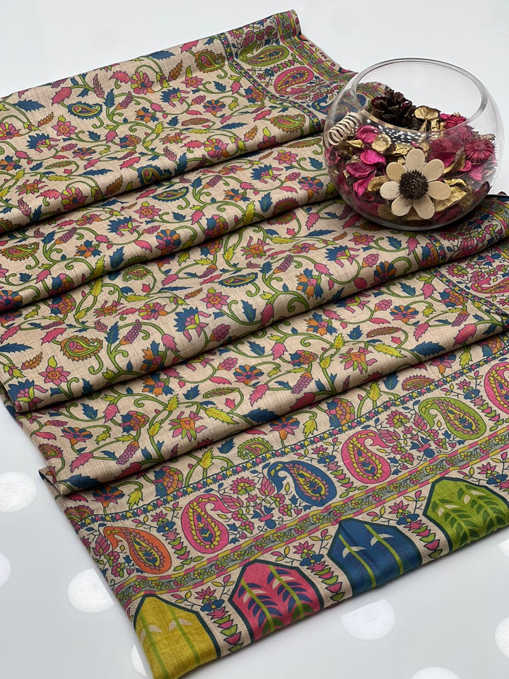 Pure Pashmina Wool Anarkali Style Jaal With Border Style Digital Print Shawl.