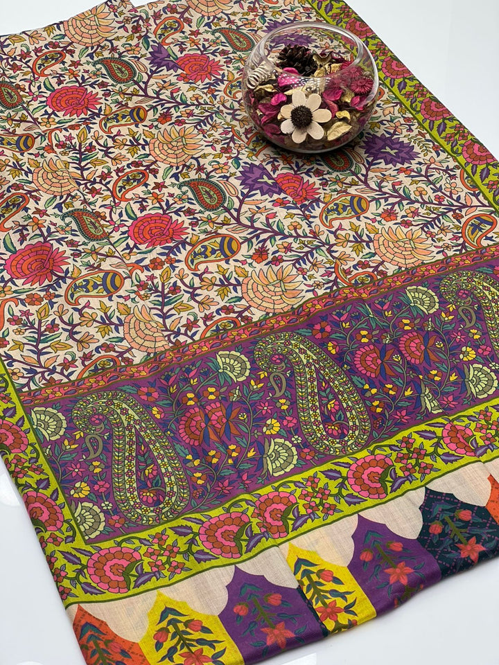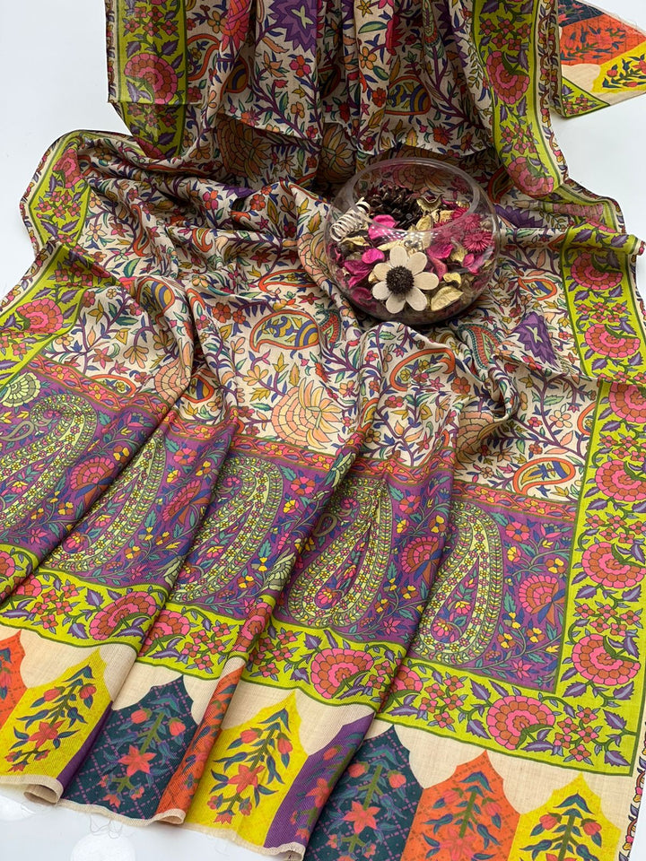 Pure Pashmina Wool Anarkali Style Jaal With Border Style Digital Print Shawl KS1025525A