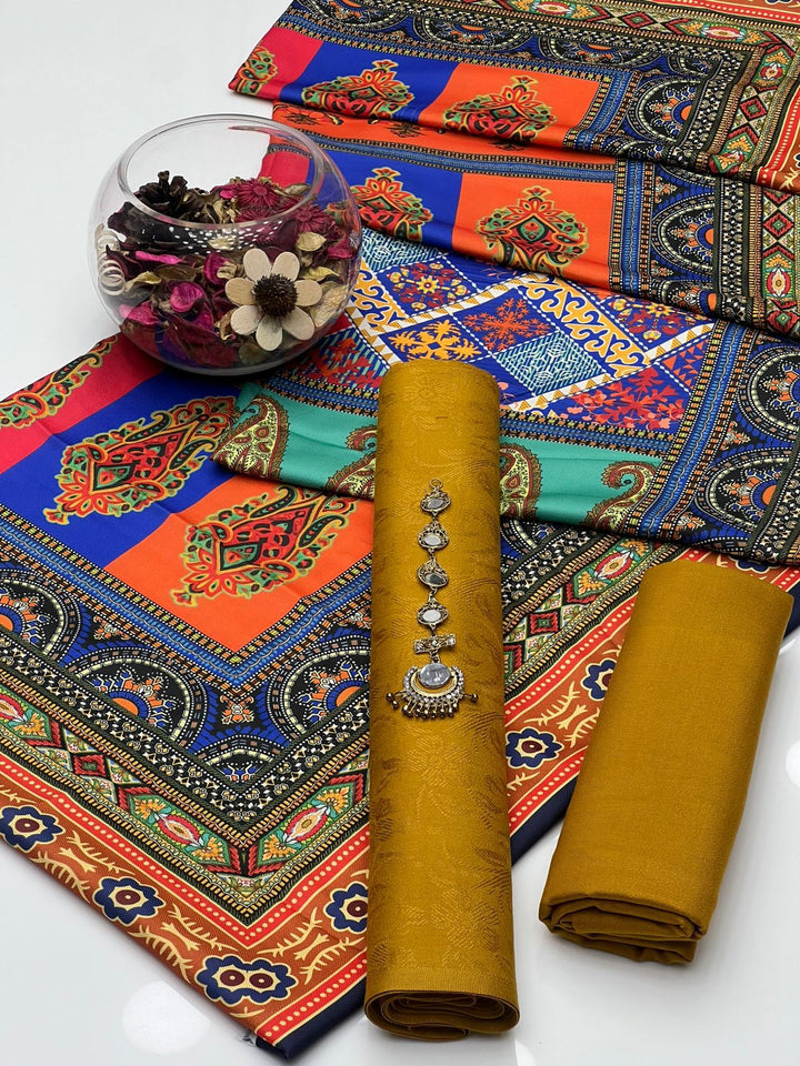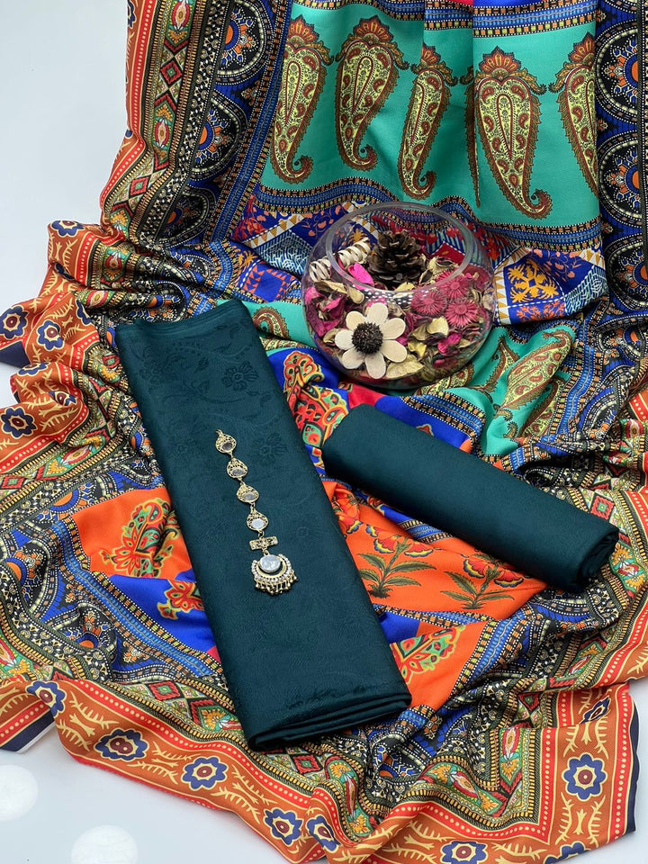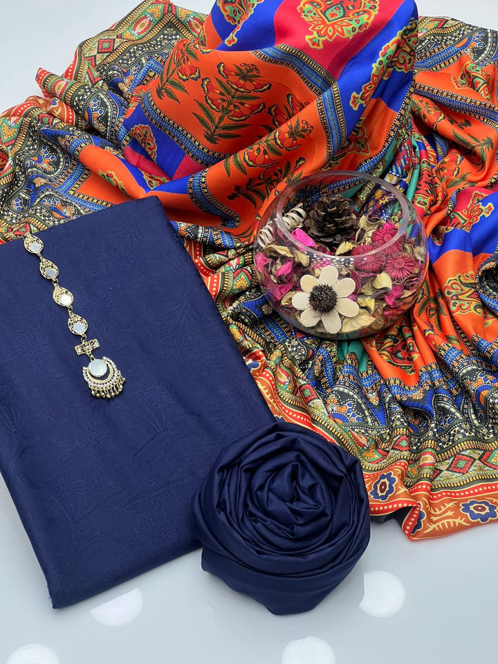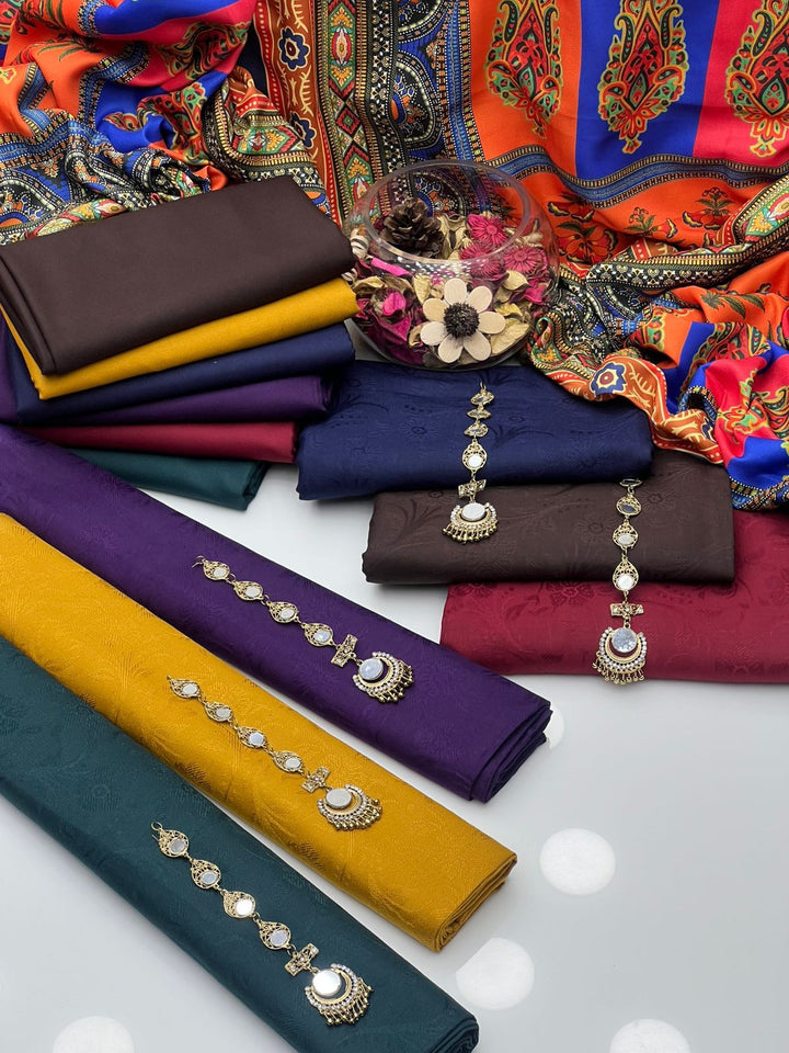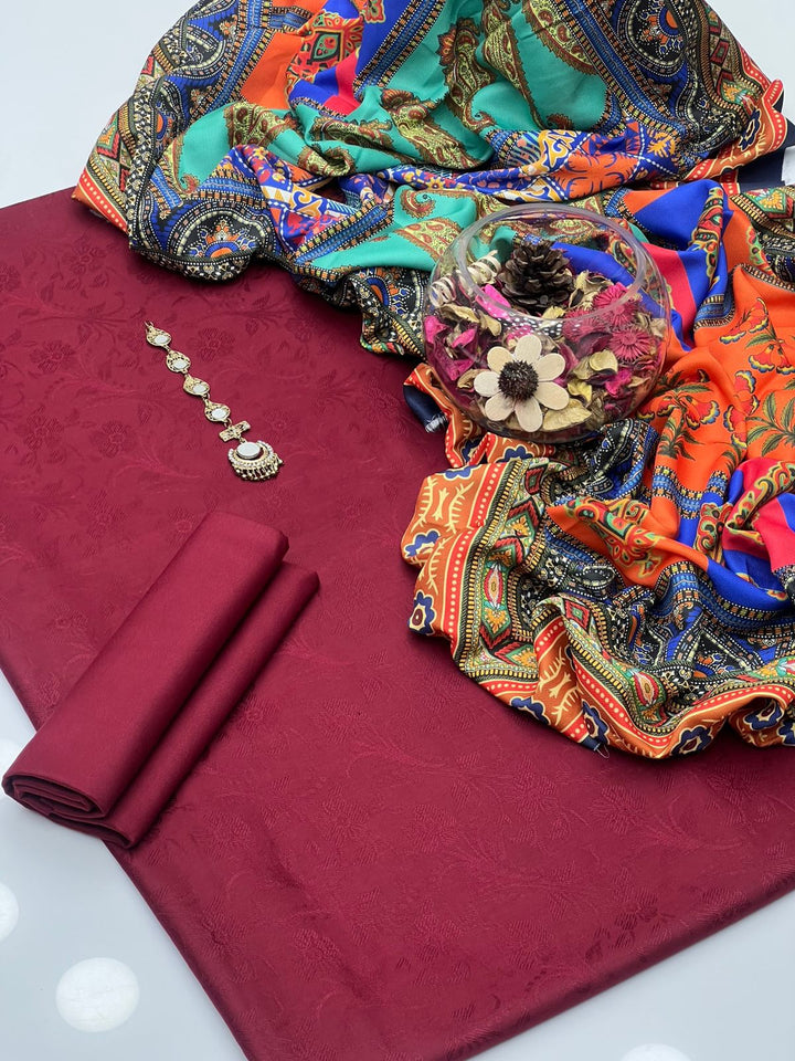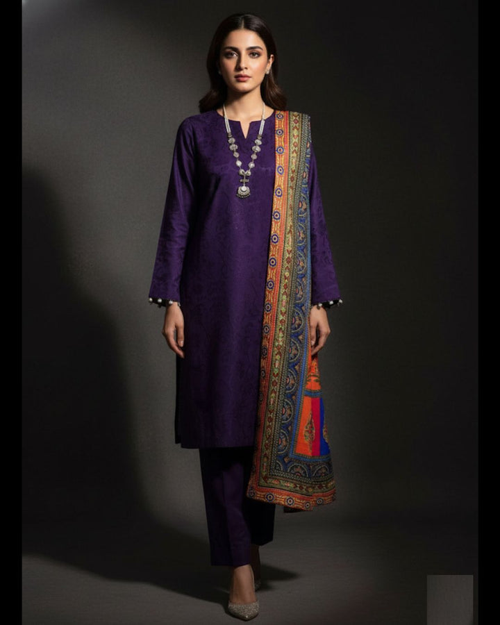 Self Dhanak Plain Shirt & Trouser Including Neckline Along With Pop Corn Digital Shawl 3 Pcs Dress π.