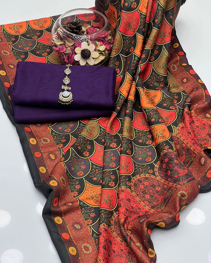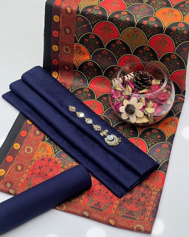 Self Dhanak Plain Shirt & Trouser Including Neckline Along With Pop Corn Digital Shawl 3 Pcs Dress πŸ‘—.