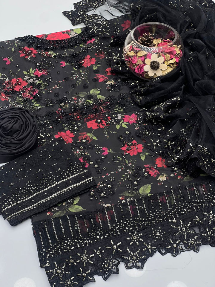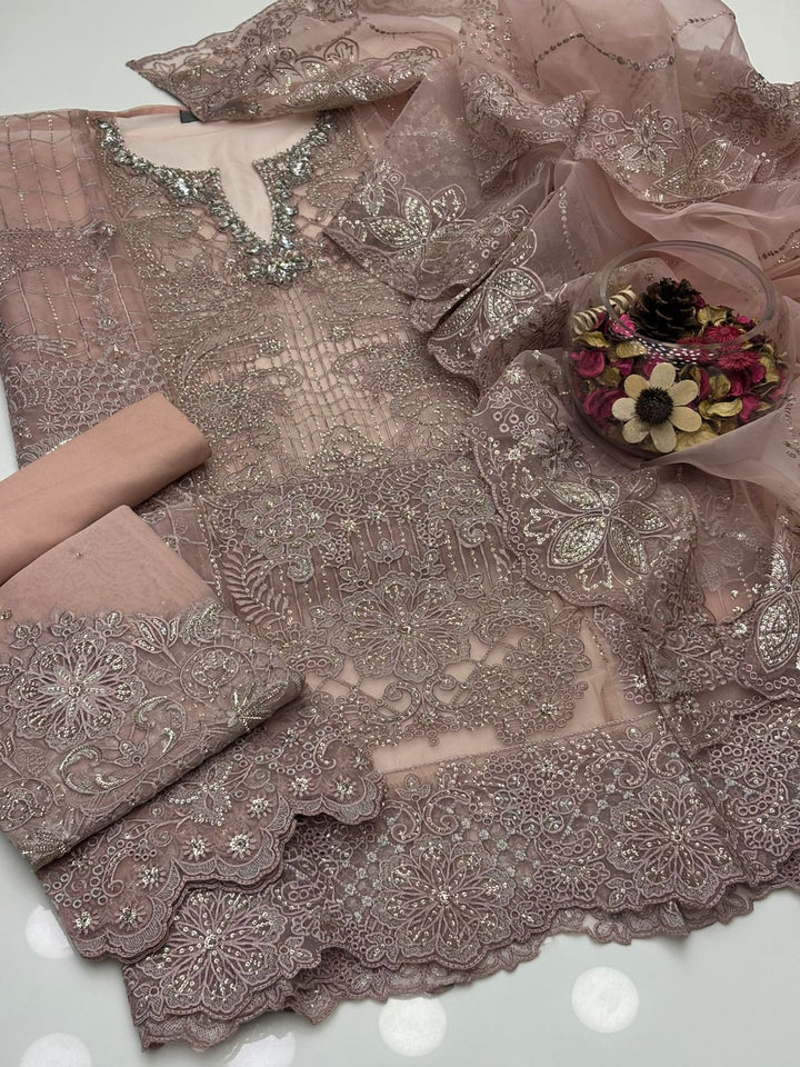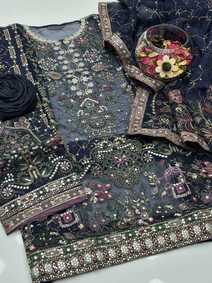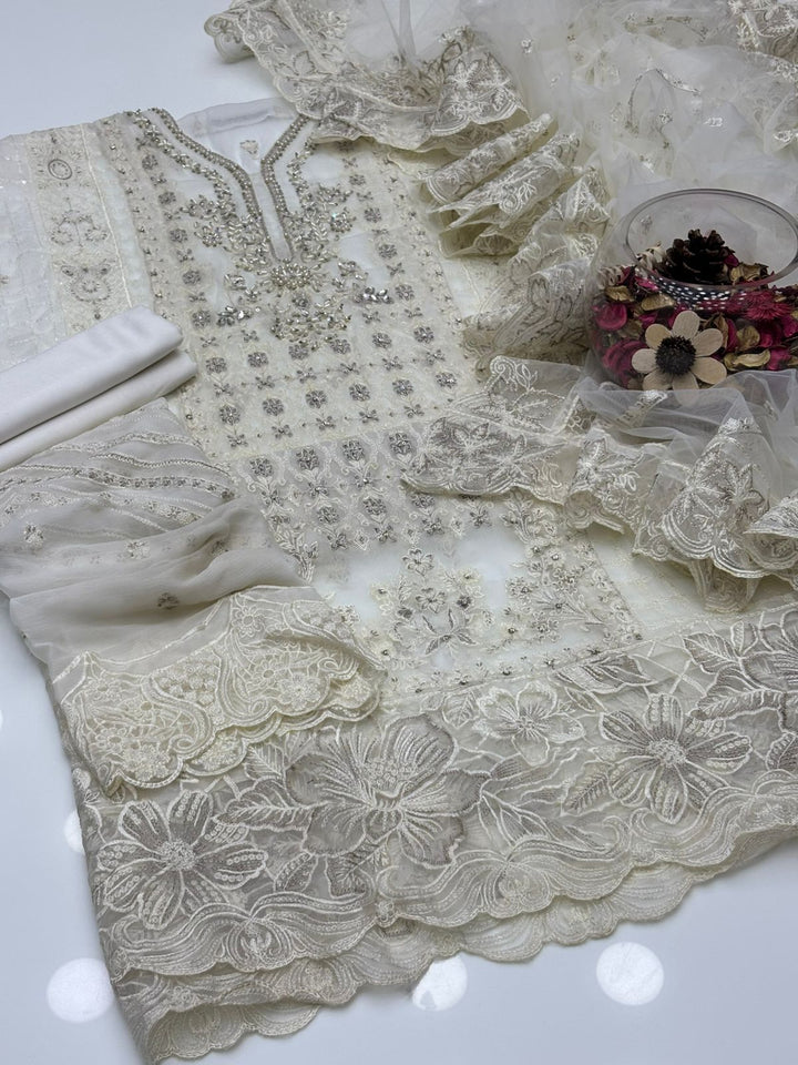 Semi Stitched Luxury Organza Embroided Adda Tanka Handwork Embroided 3 Pcs Dress KS1125569