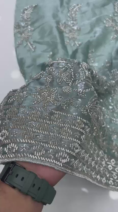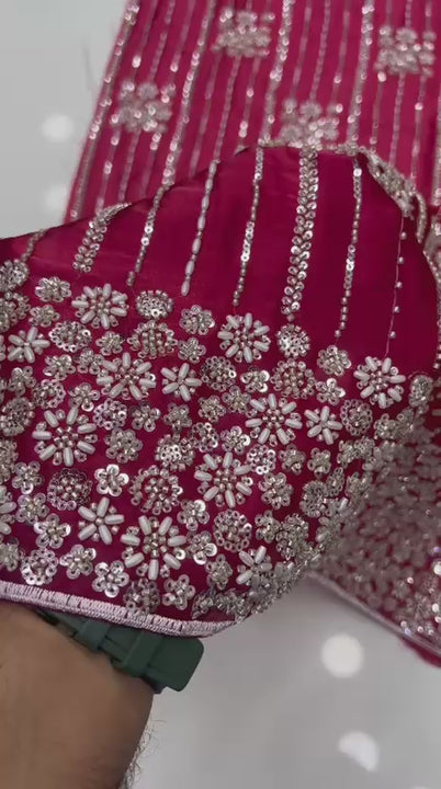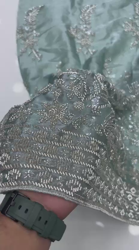 Sheesha Silk Fancy Sequence Pearls Mooti Beats Heavy Work Shirt With Sheesha Silk Sequence Work Back Along With 2 Sided Sequence Heavy Border ย & Sequence Lining Dupatta 2Pcs Dress ๐.ย