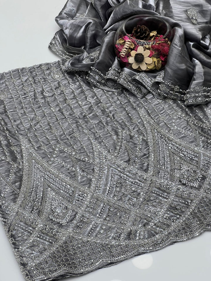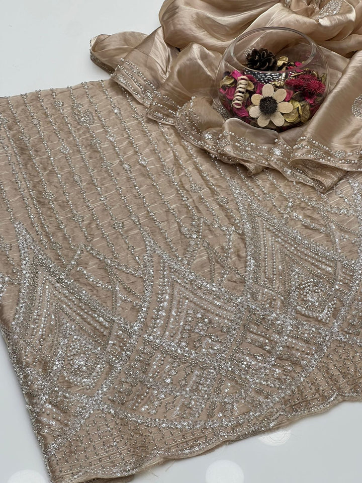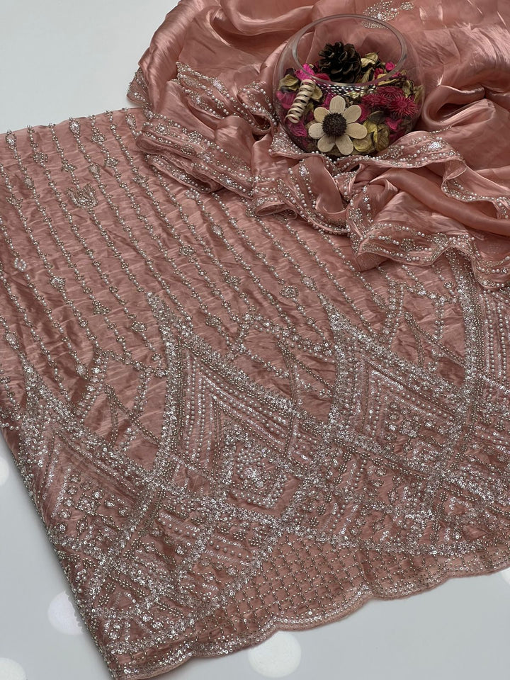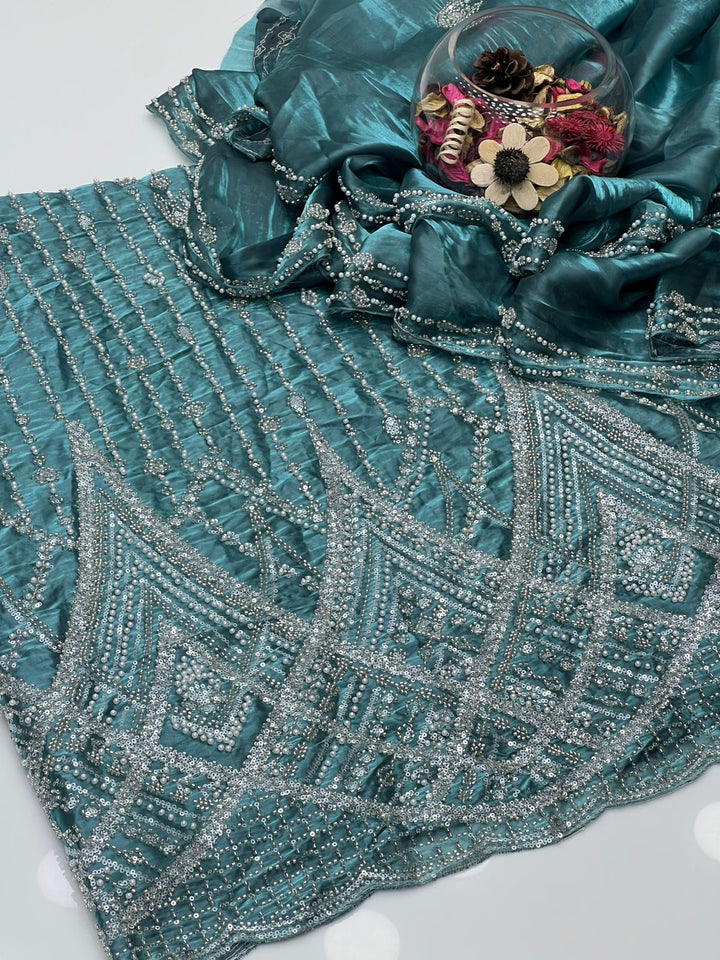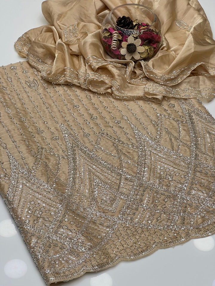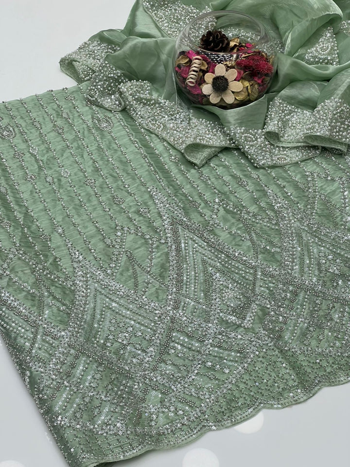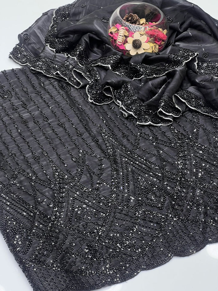 Sheesha Silk Fancy Sequence Pearls Motti Beads Heavy Front & Back Work Shirt Along With 2 Sided Sequence Heavy Border Dupatta 2 Pcs Dress ๐.ย