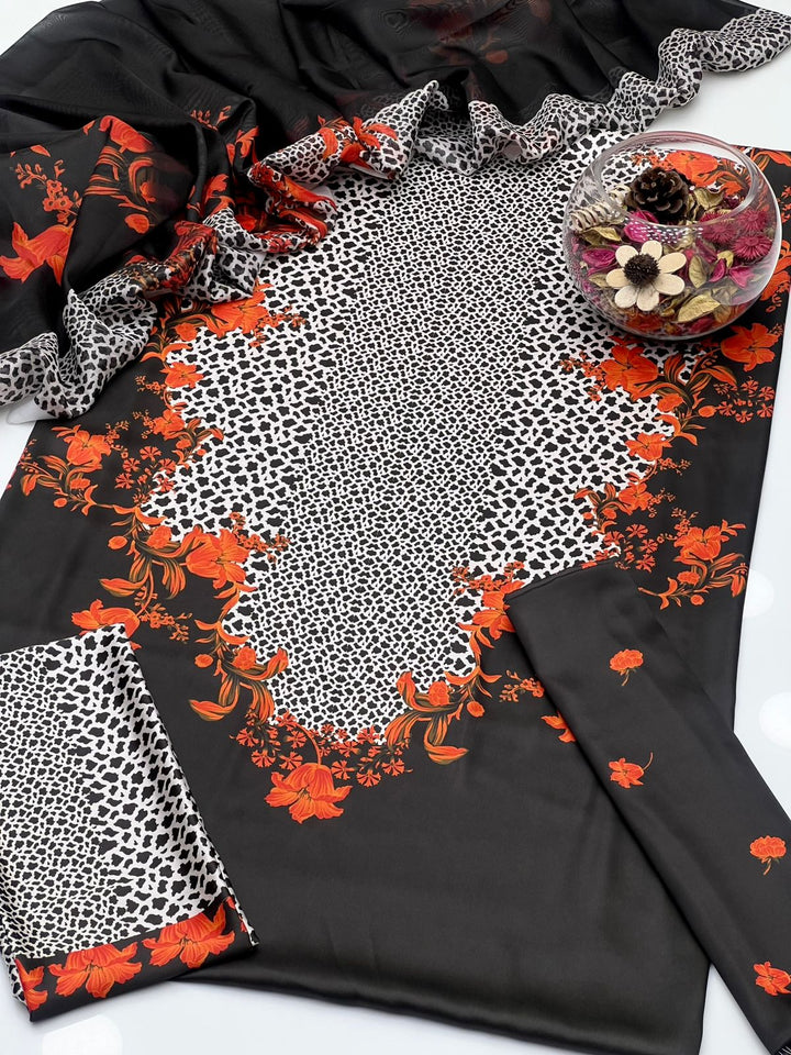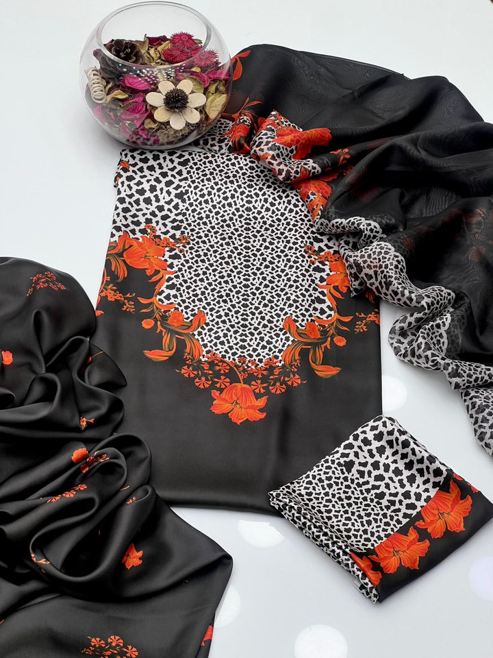 Shmaoze Silk Digital Print Shirt With Shamoze Silk Digital Print & Simple Trouser Along With Silk Digital Print Dupatta 3Pcs Dress πŸ‘—.Β