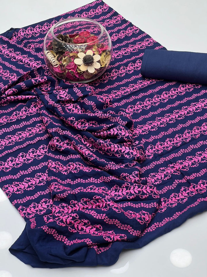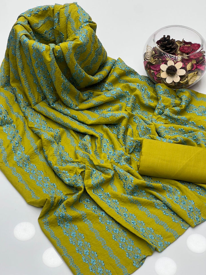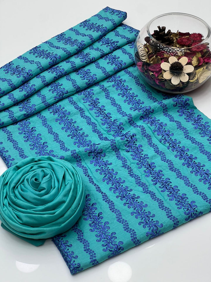 Slub Linen Shifley Chiken Front Back & Sleeves Allover Embroided Shirt With Plain Slub Linen Trouser 2Pc Dress 👗.