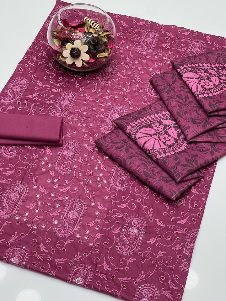 Soft Cotton Chiken Breeze Embroidery With Sequence Work Shirt , Plain Trouser Along With Monar Digital Print With Banarsi Lining Dupatta 3 Pcs Dress ๐.