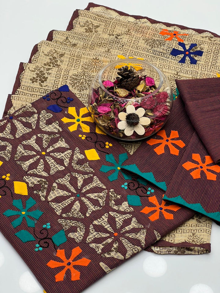 Soft Cotton Khaddar Multi Applick Work With Soft Khaddar Applick Trouser Along With Khaddi Net Applick Dupatta 3 Pcs Dress π.