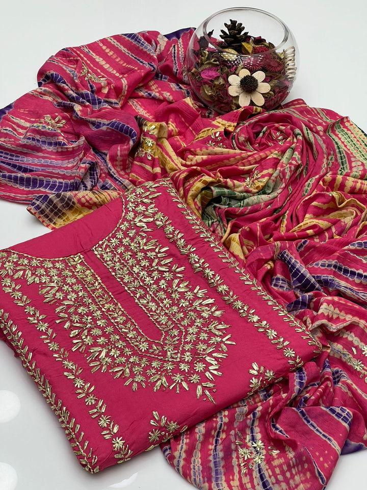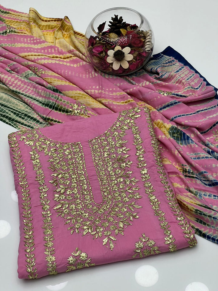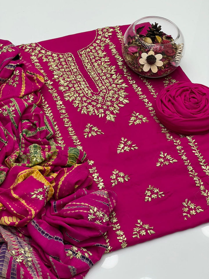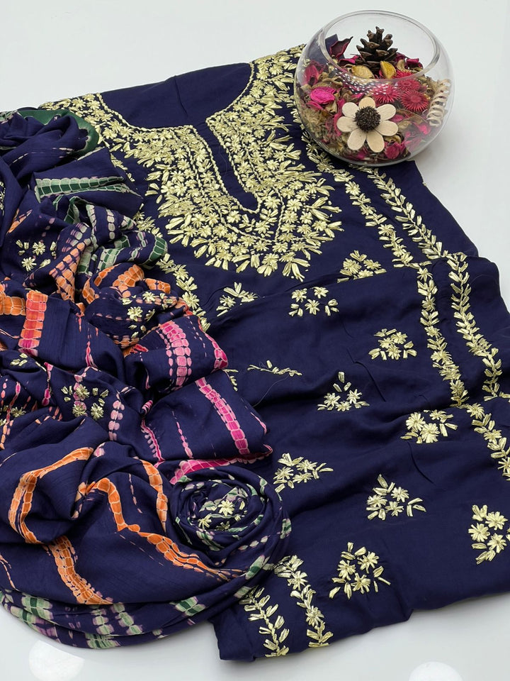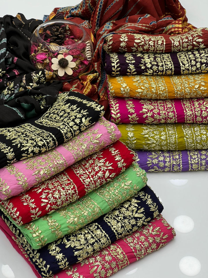 Soft Linen Gotta Work Shirt, Plain Linen Trouser Along With Soft Linen Gotta Work Tye βNβ Dye Dupatta Along 3 Pcs Dress π.Β
