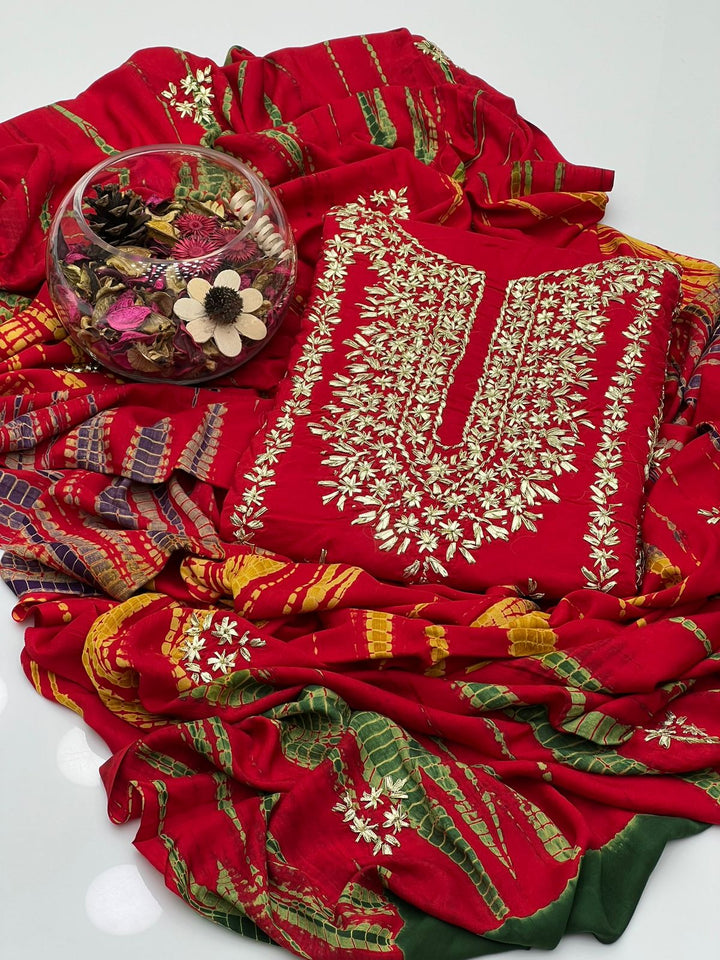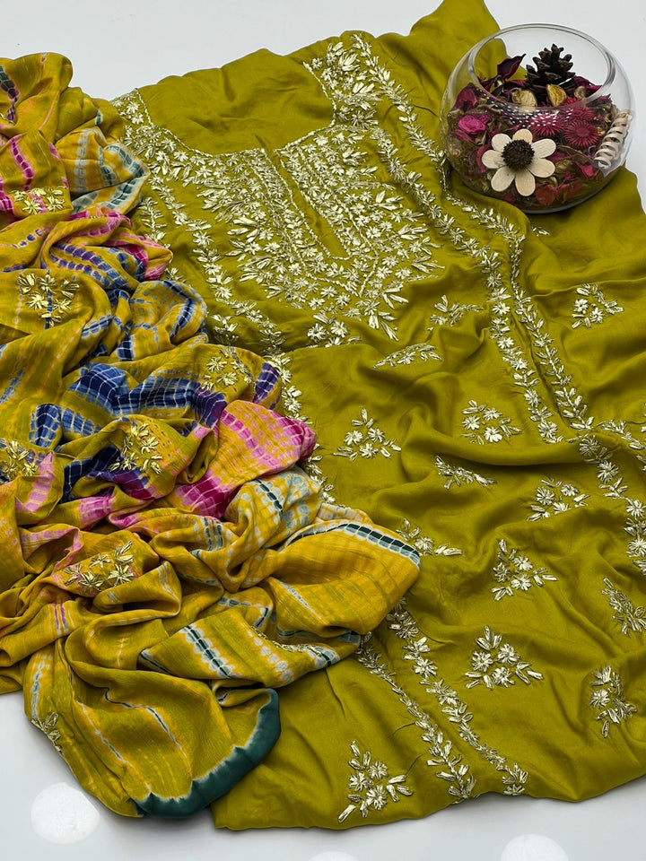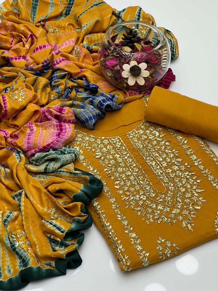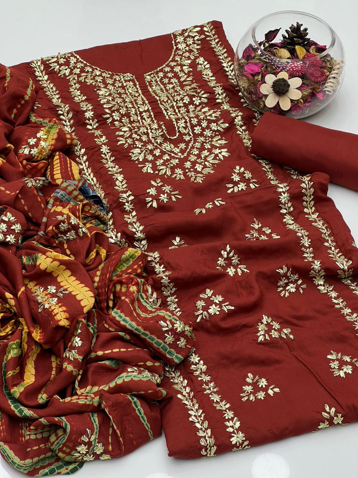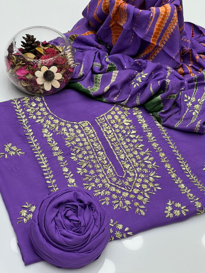 Soft Linen Gotta Work Shirt, Plain Linen Trouser Along With Soft Linen Gotta Work Tye βNβ Dye Dupatta Along 3 Pcs Dress π.Β