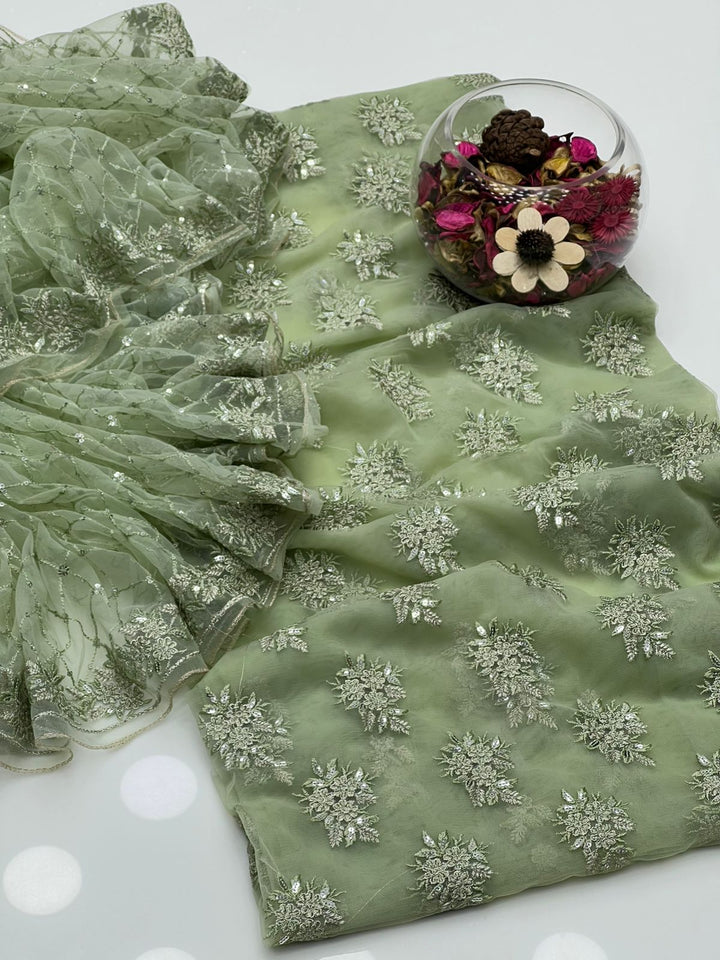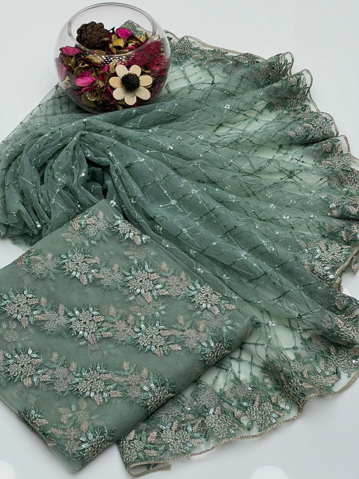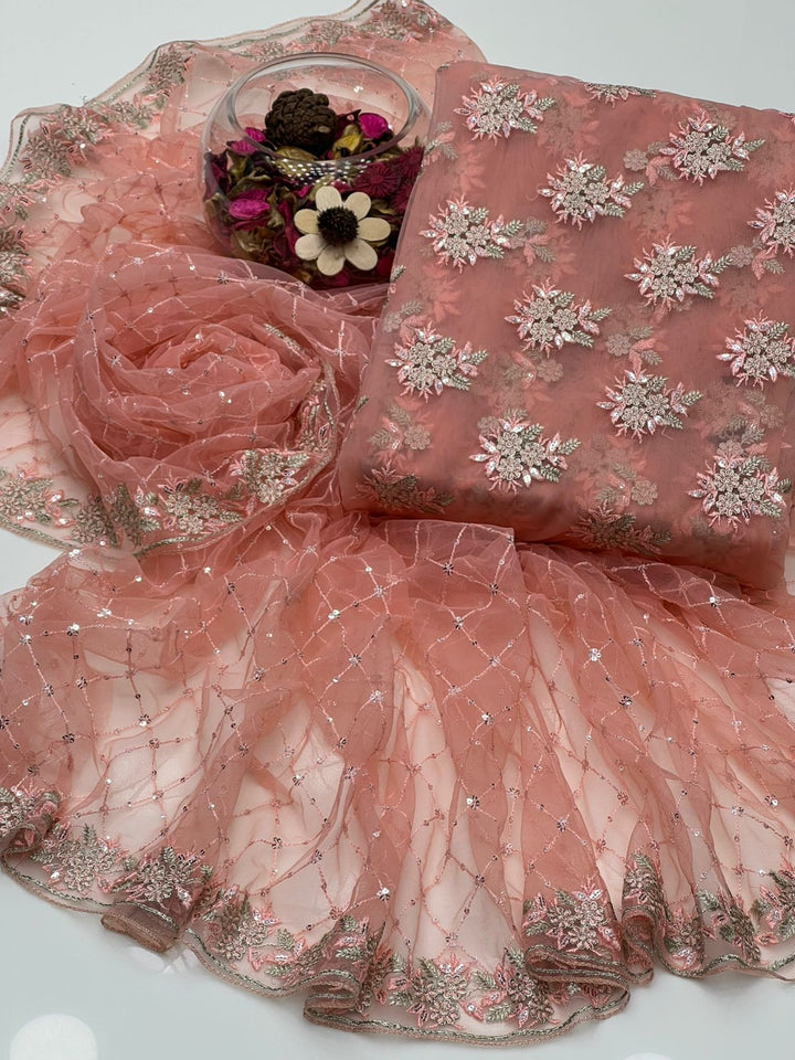 Soft Net With Fancy Embroidery Sequence Booti Shirt & Dupatta 2 Pcs Dress π.